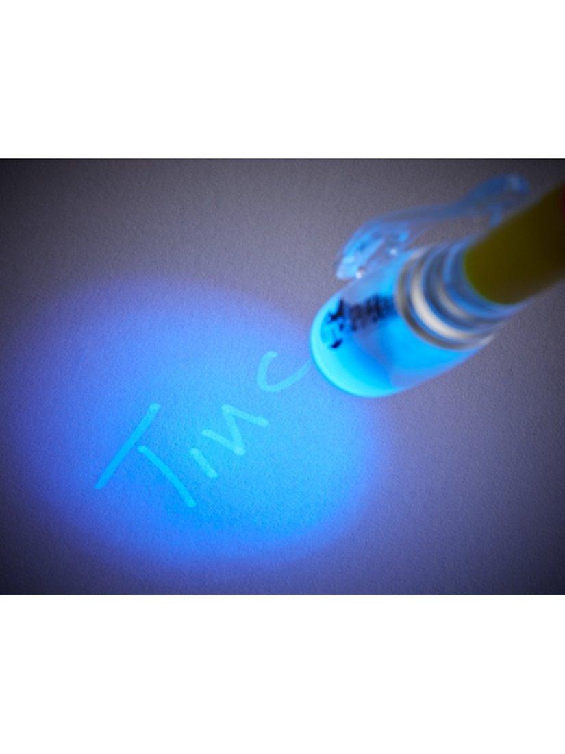 Send and transfer secret messages with your friends without nosey parents ever finding out! Simply write your message in invisible ink and use the light on your pen to reveal your notes!