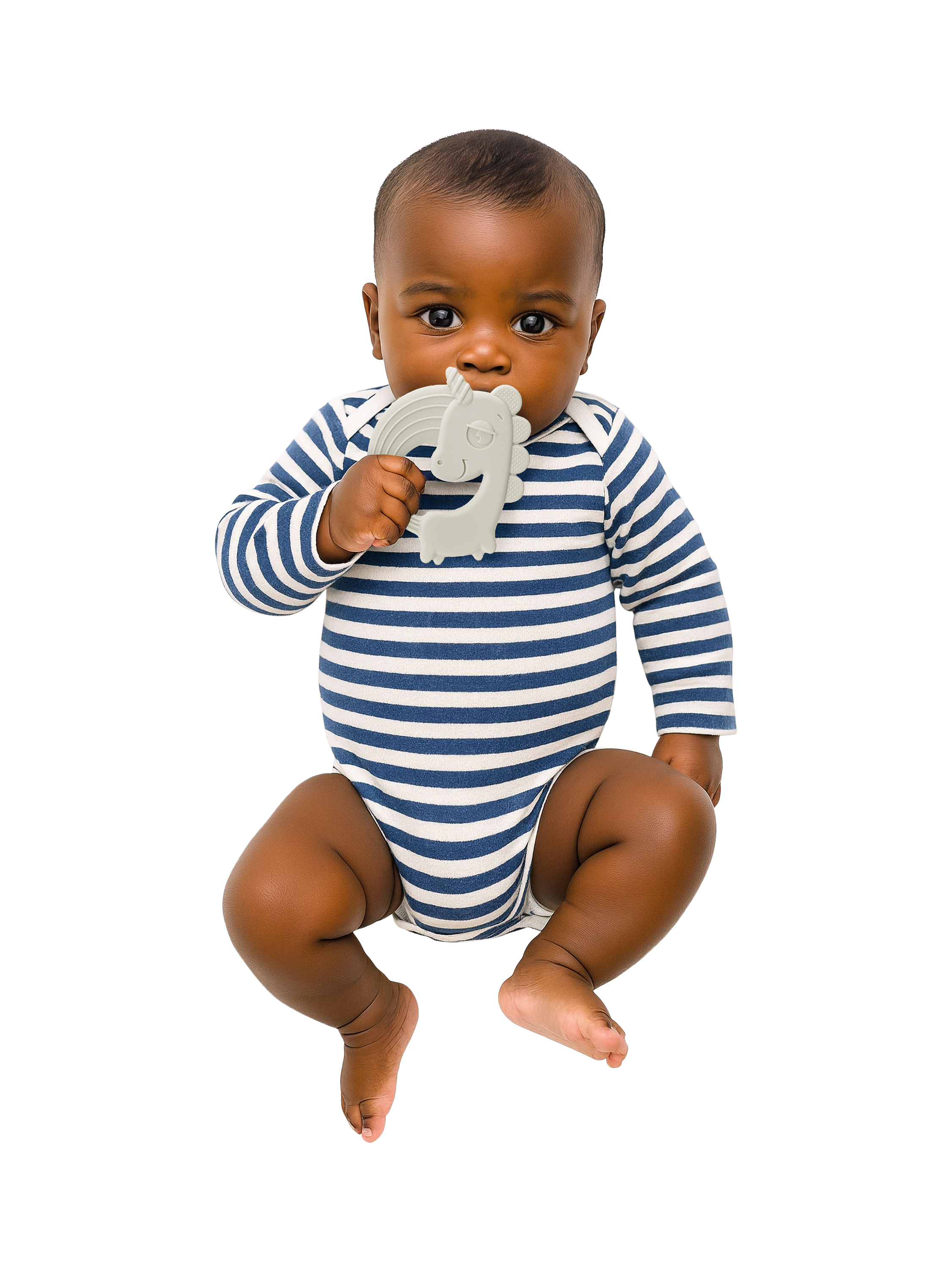 With stimulating textures and an adorable design, the teethers offer vital visual and tactile stimulation that supports the development of your baby’s senses. The easy grasp handle helps babies hold the teethers in their tiny hands.