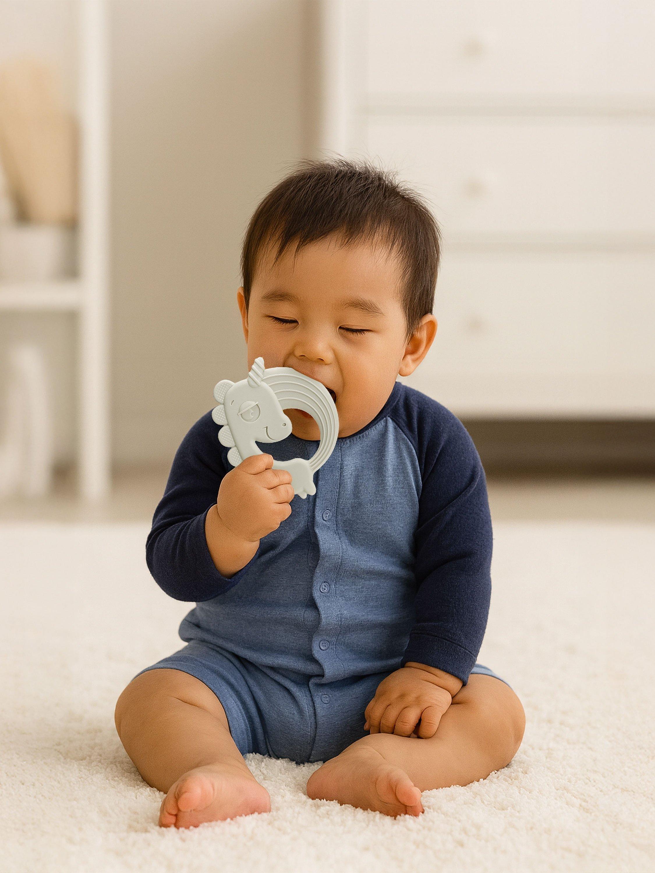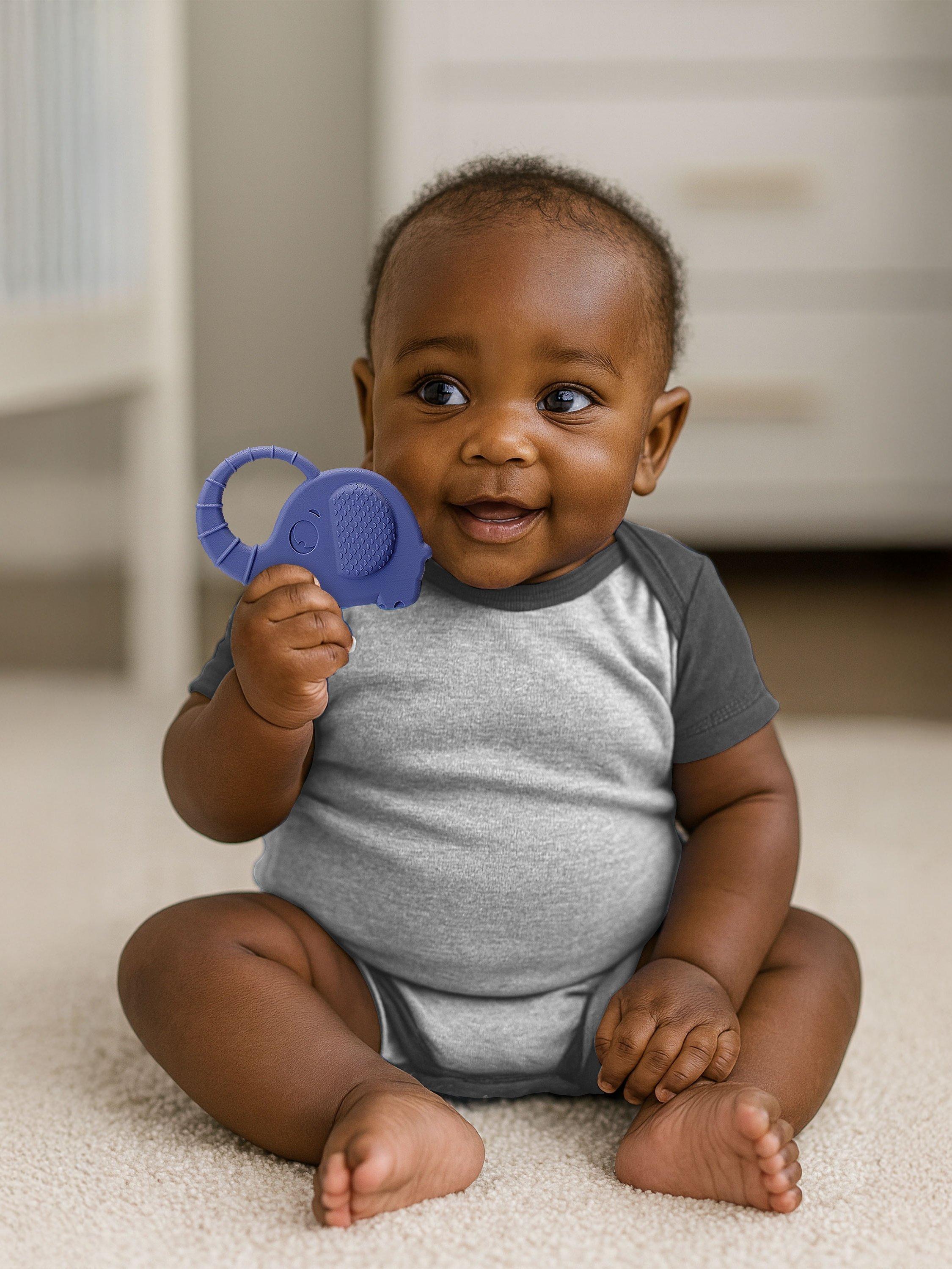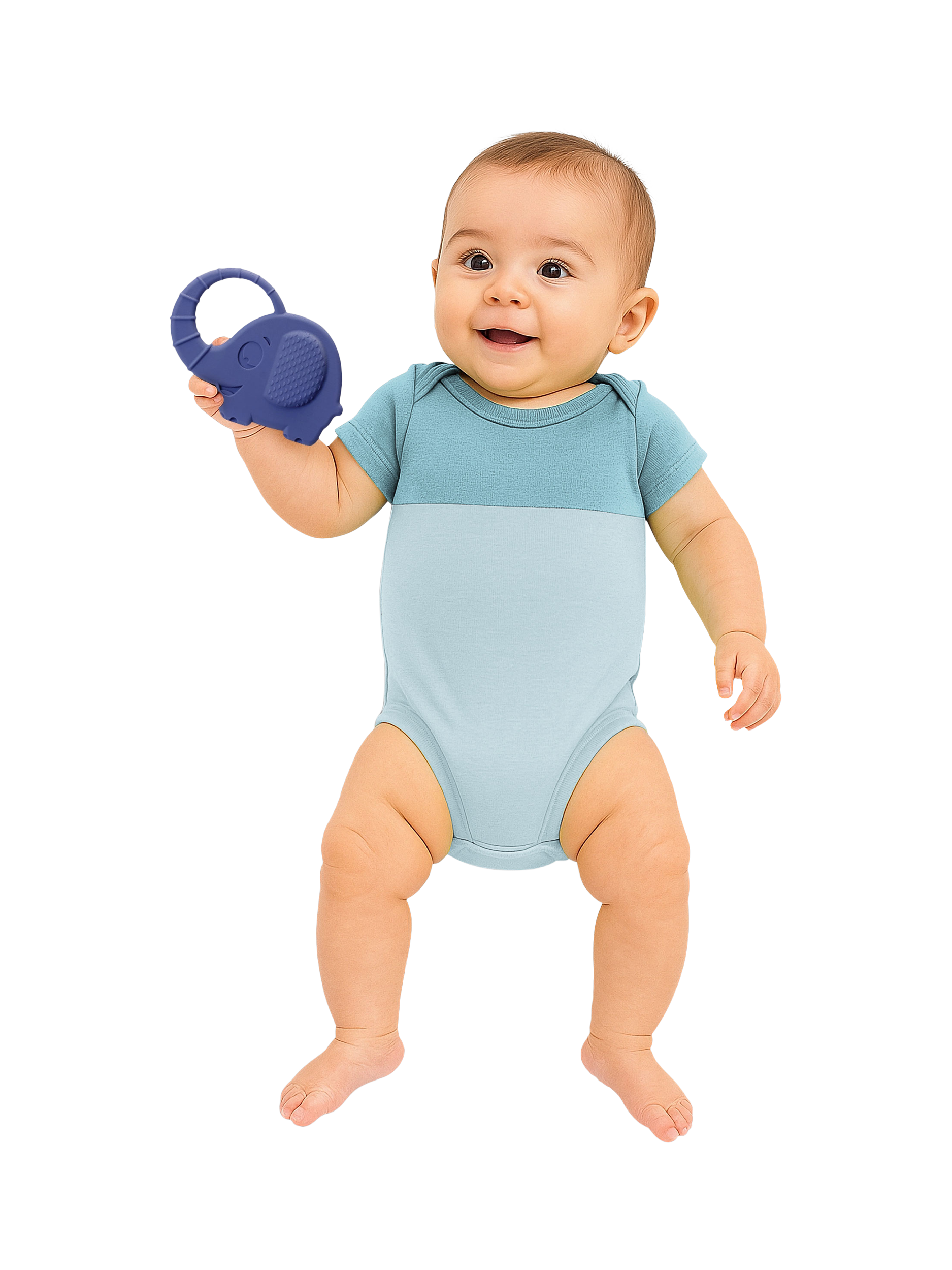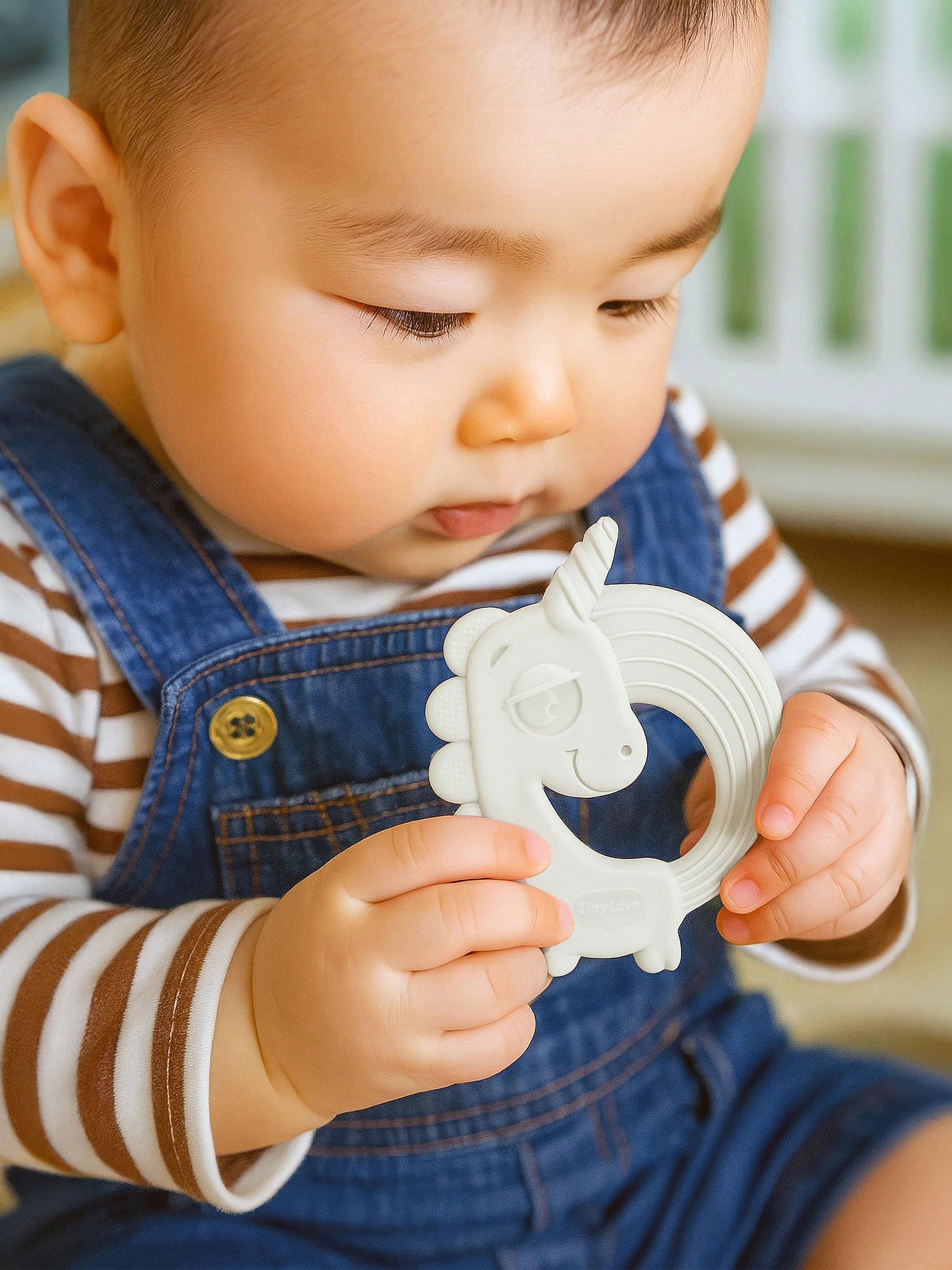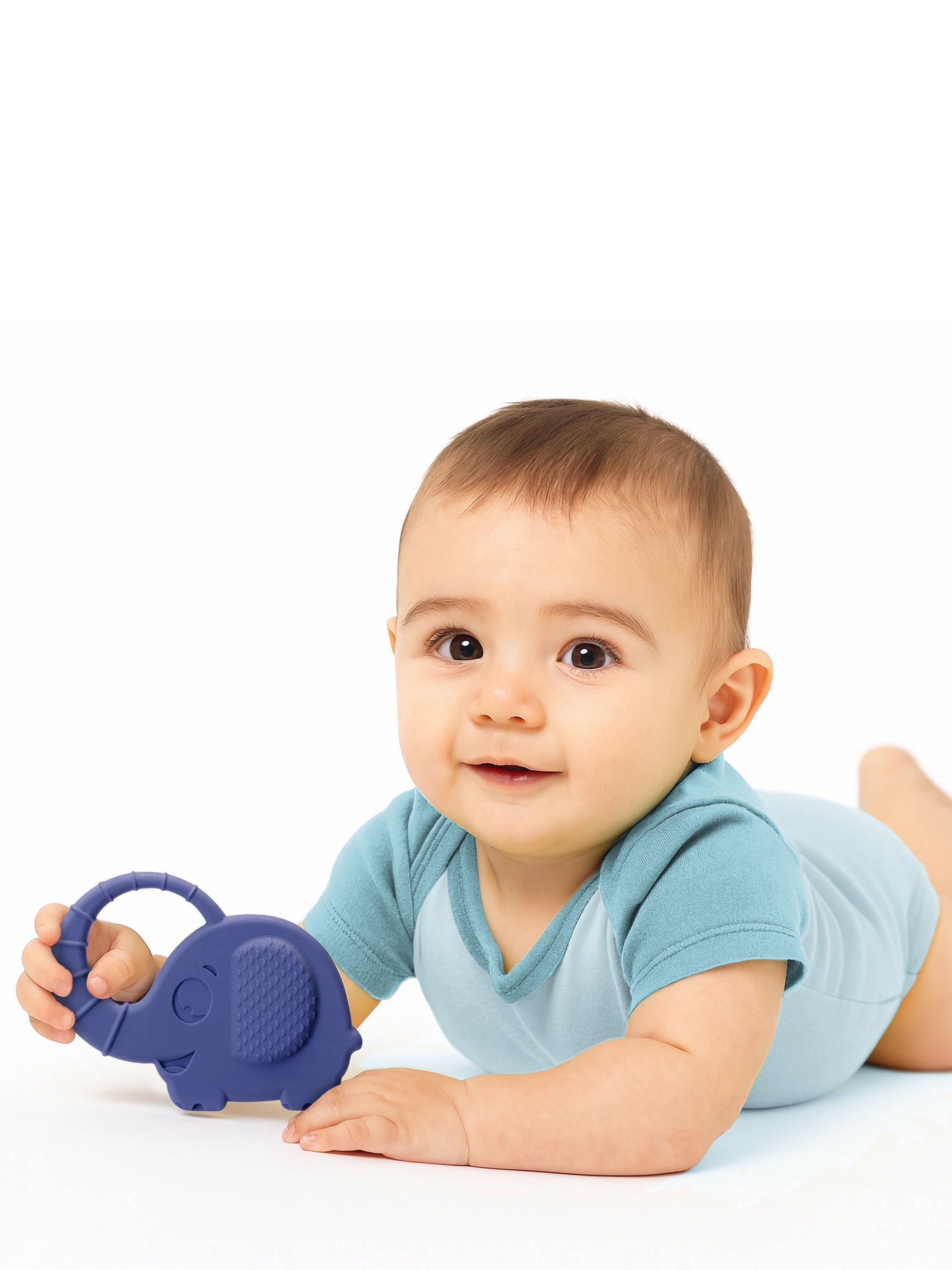 This adorable duo features a playful elephant and unicorn with textured surfaces that massage sore gums and ease teething discomfort. The teethers are easy for little hands to grasp and hold and support babies’ sensory exploration and motor skill development.