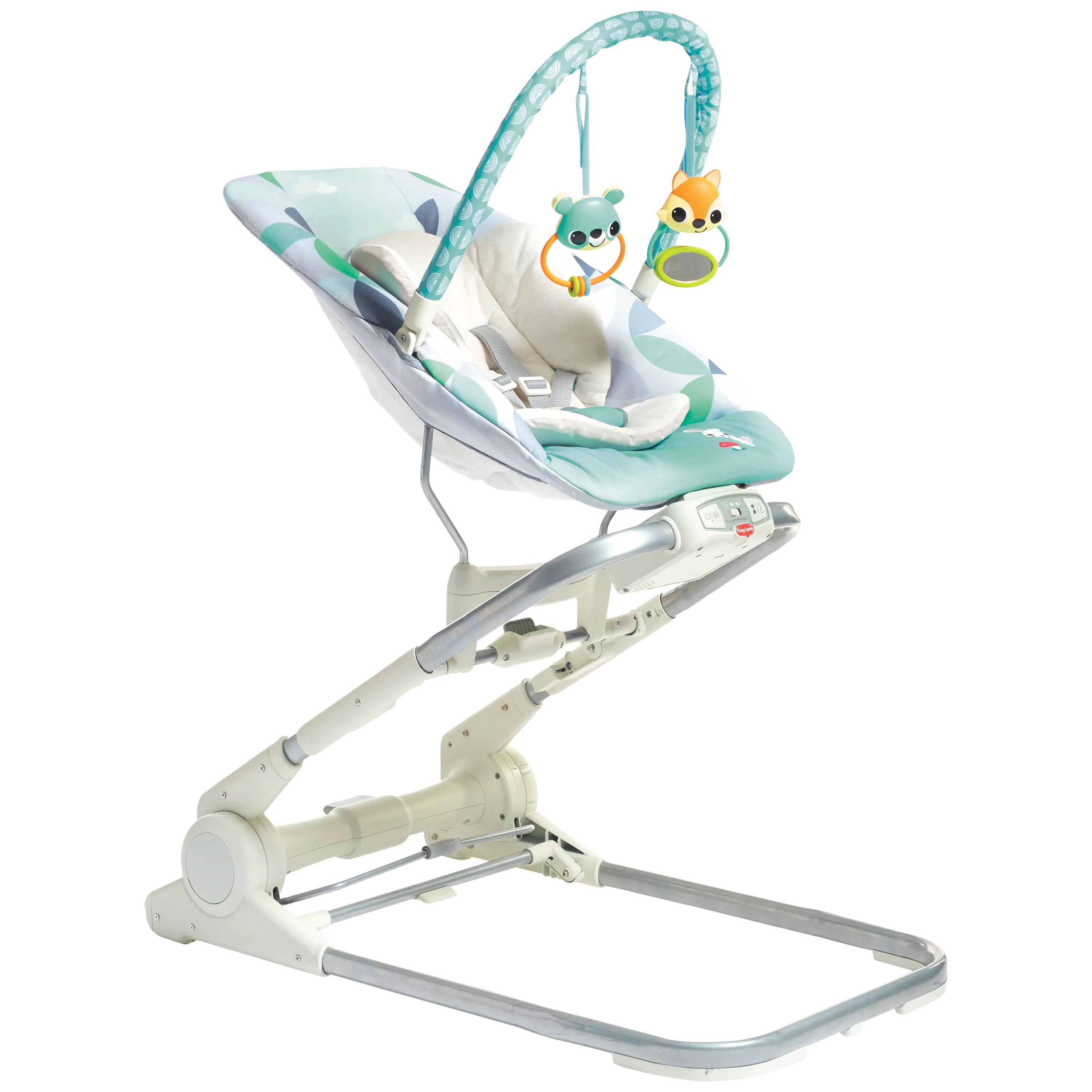 Featuring a comfy padded seat and adjustable bar with 2 toys, this bouncer plays 25 minutes of soothing or playful music and offers optional vibrating motions to soothe baby. The bouncer mode is an excellent position to let baby enjoy some quality family time in the living room.
