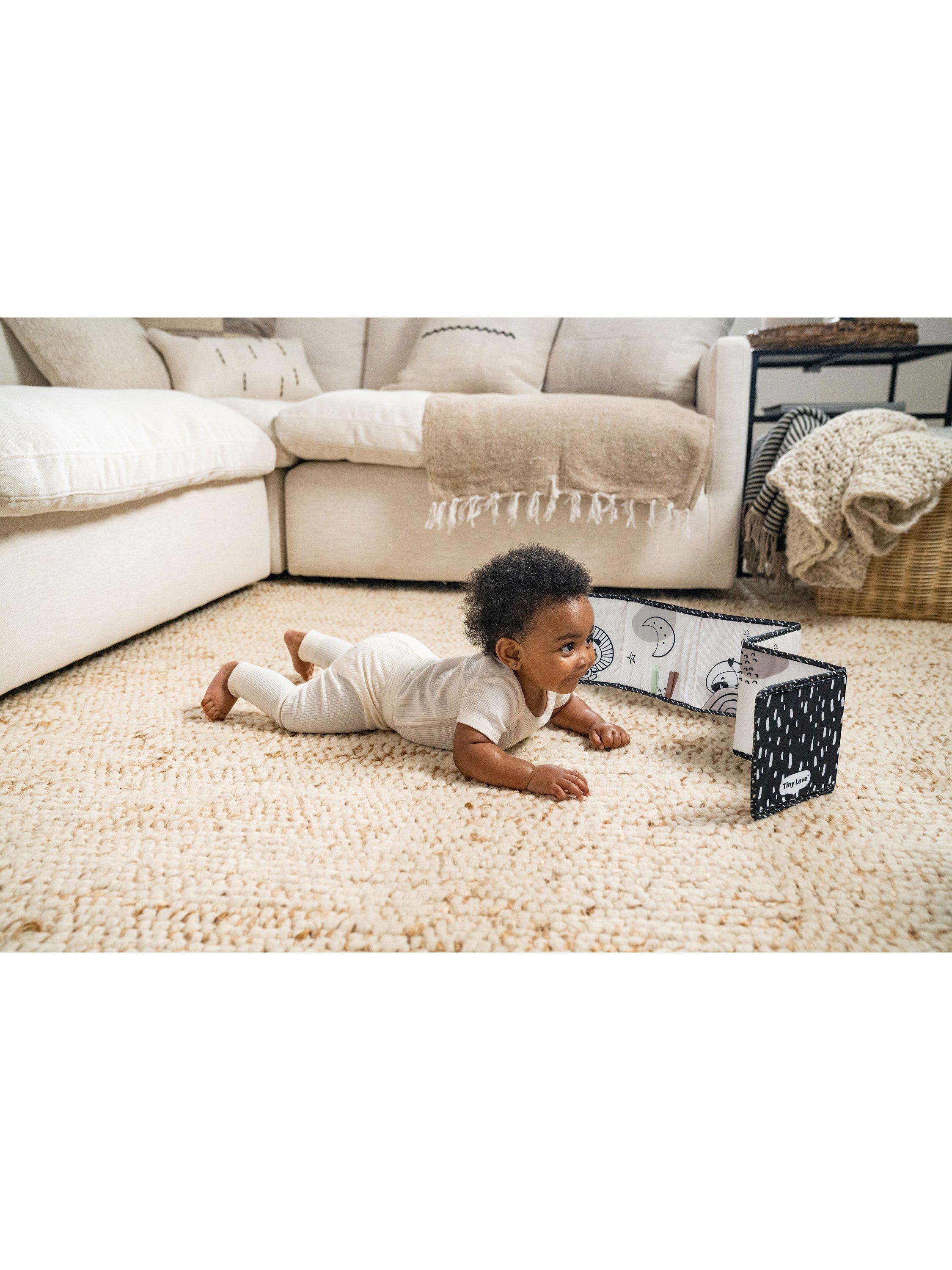 With a combination of black and white design on one side (perfectly suited to younger babies) and a stylish and trendy design on the other, the Double-Sided First Booked offers essential visual and tactile stimulation for your little one.