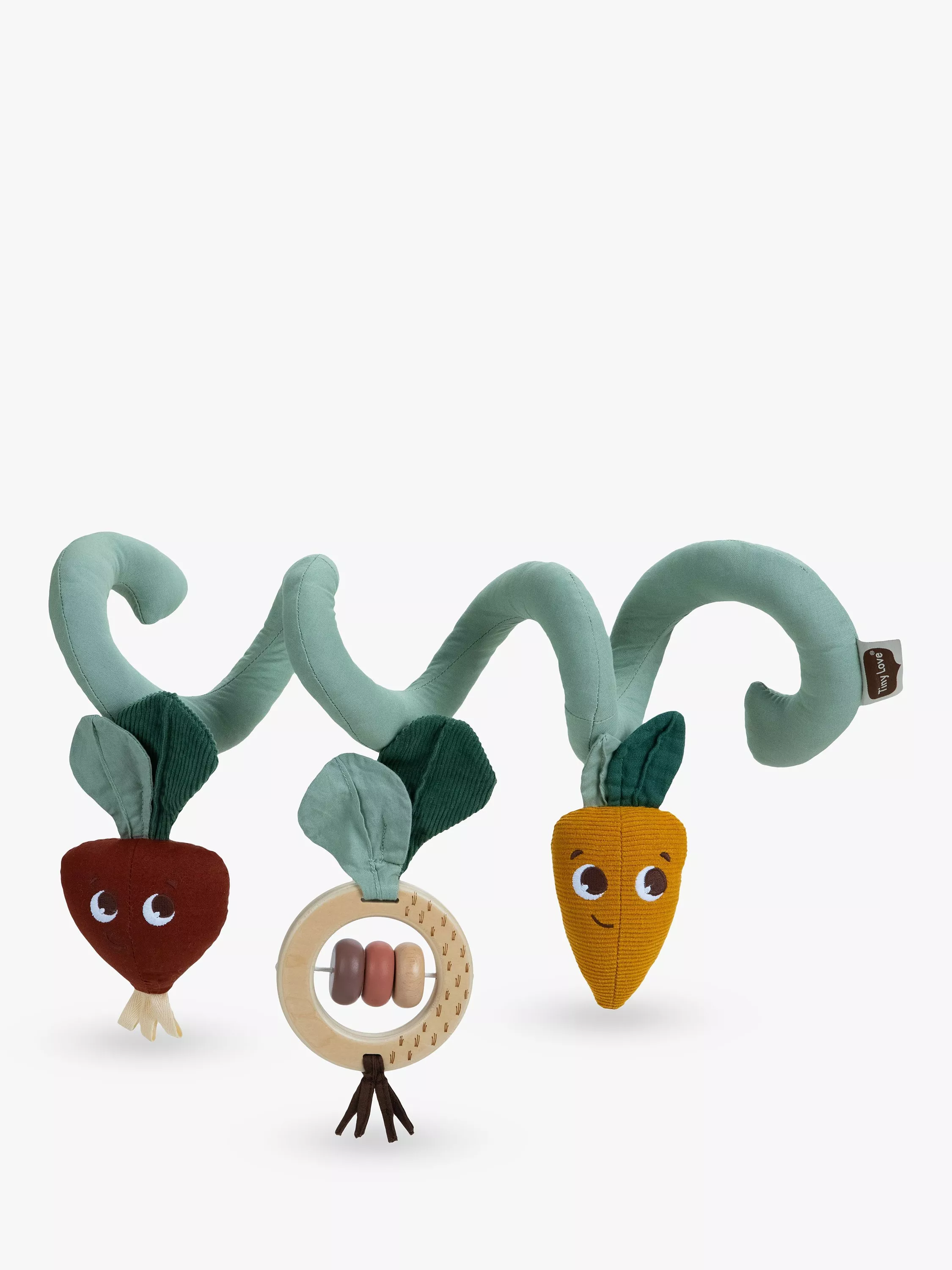 The Garden of Adventures Spiral Stroller Activity Toy is designed to engage, entertain, and develop your baby's senses and motor skills, this natural stroller toy offers valuable visual, audio, and tactile stimulation that entertains babies on the go. With its adorable vegetable characters, interesting variety of textures and wooden rattle, this toy promotes eye-hand coordination and helps little ones develop and grow.