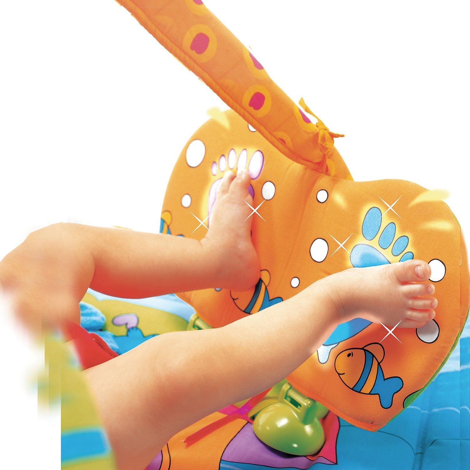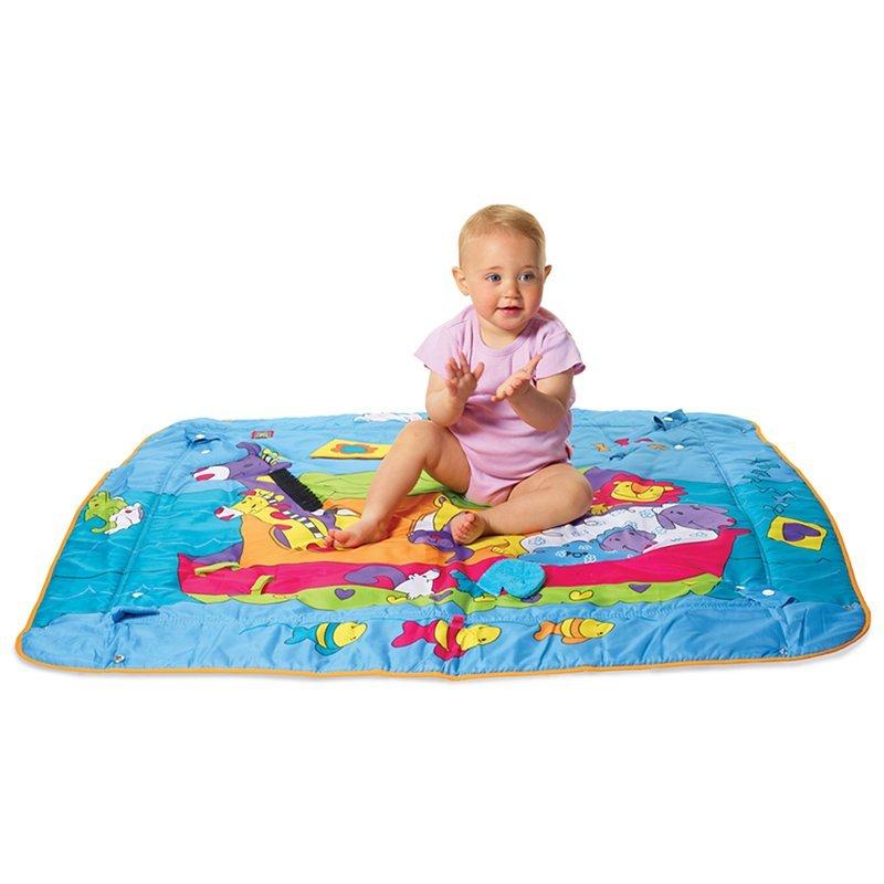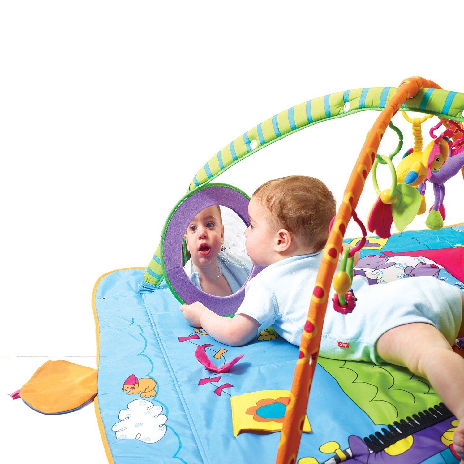 The soft playmat has gym bars arching over it with several hanging toys for baby to play with. With a choice of classical music or animal sounds it's great fun too.