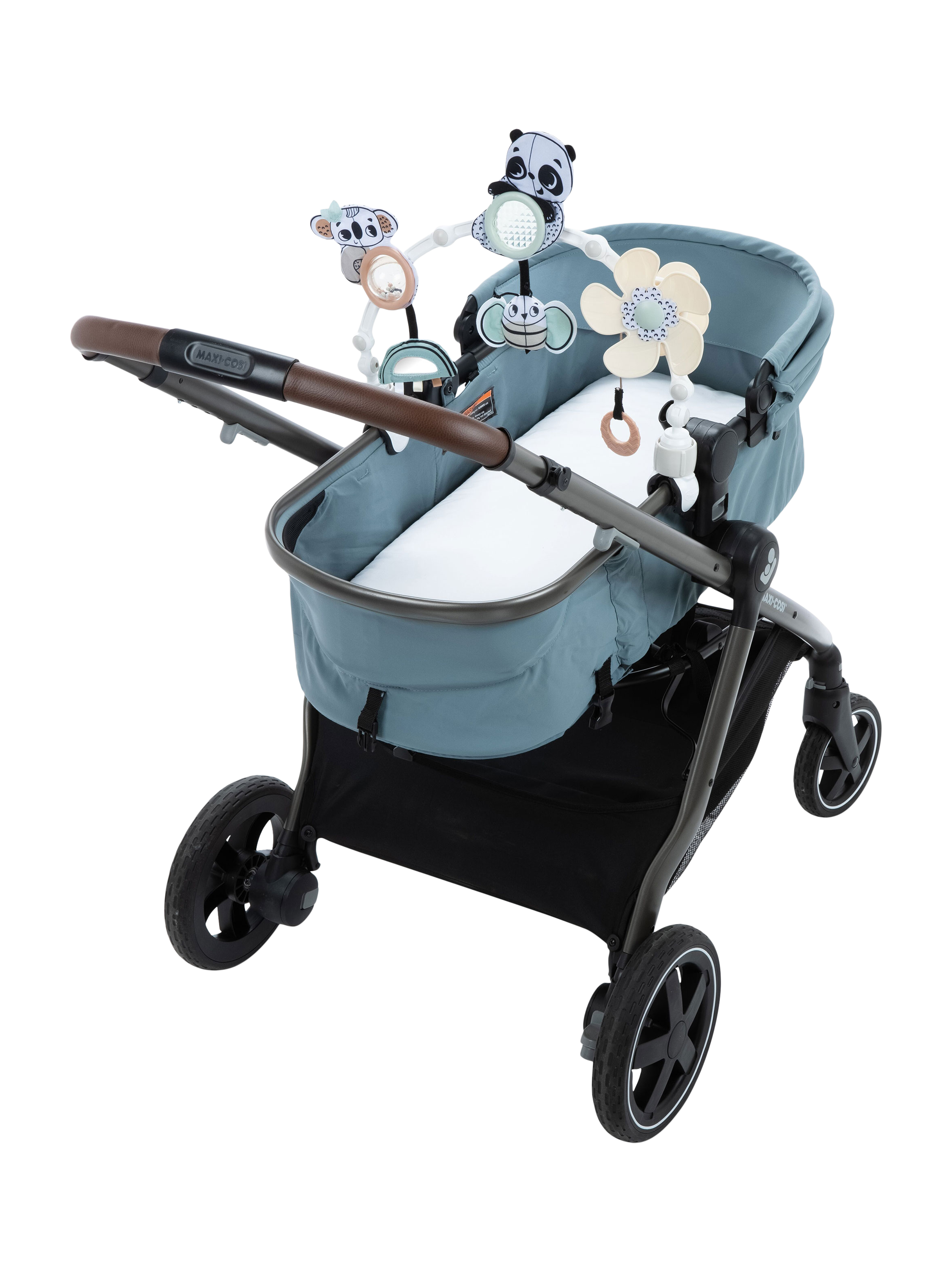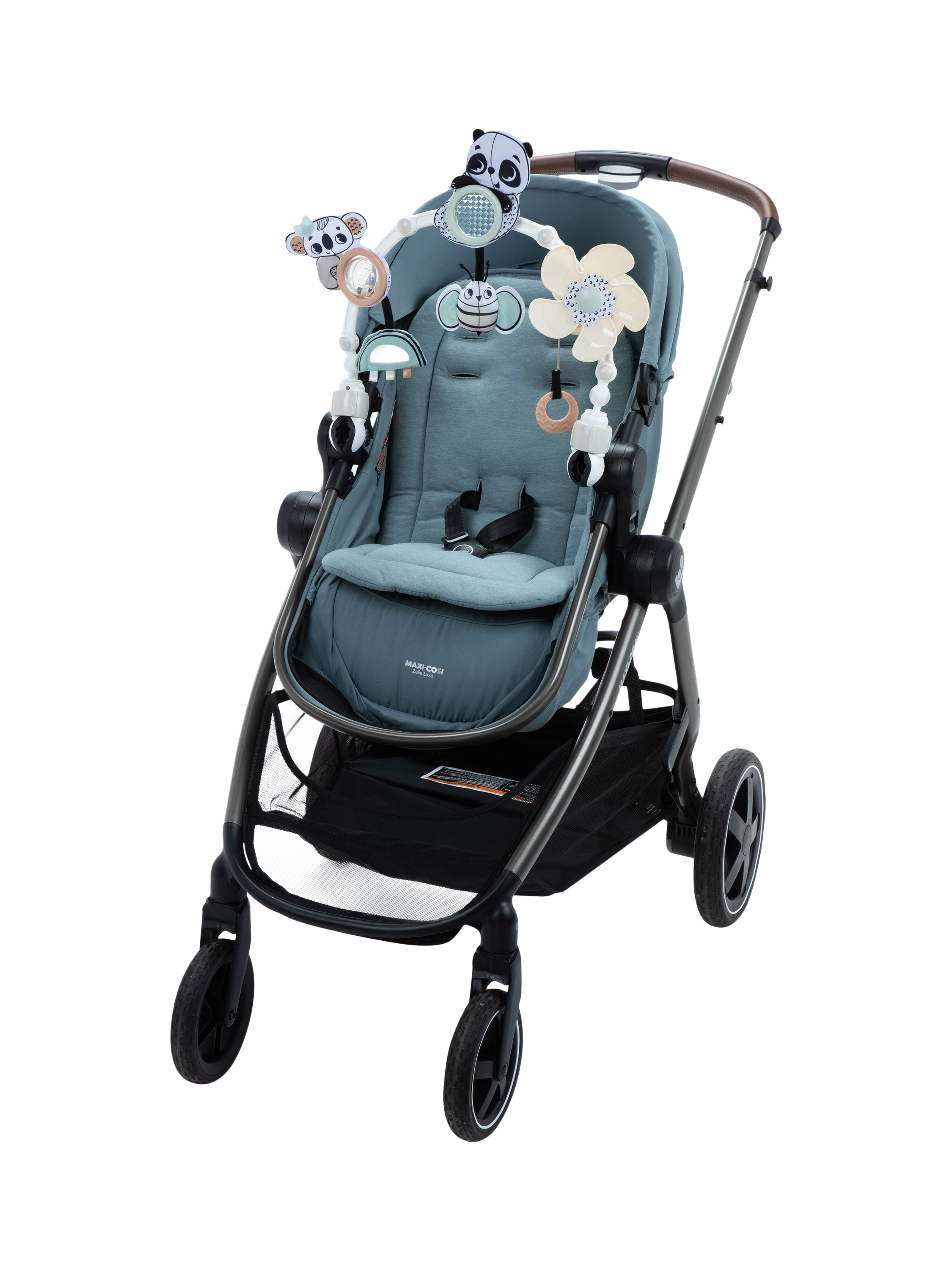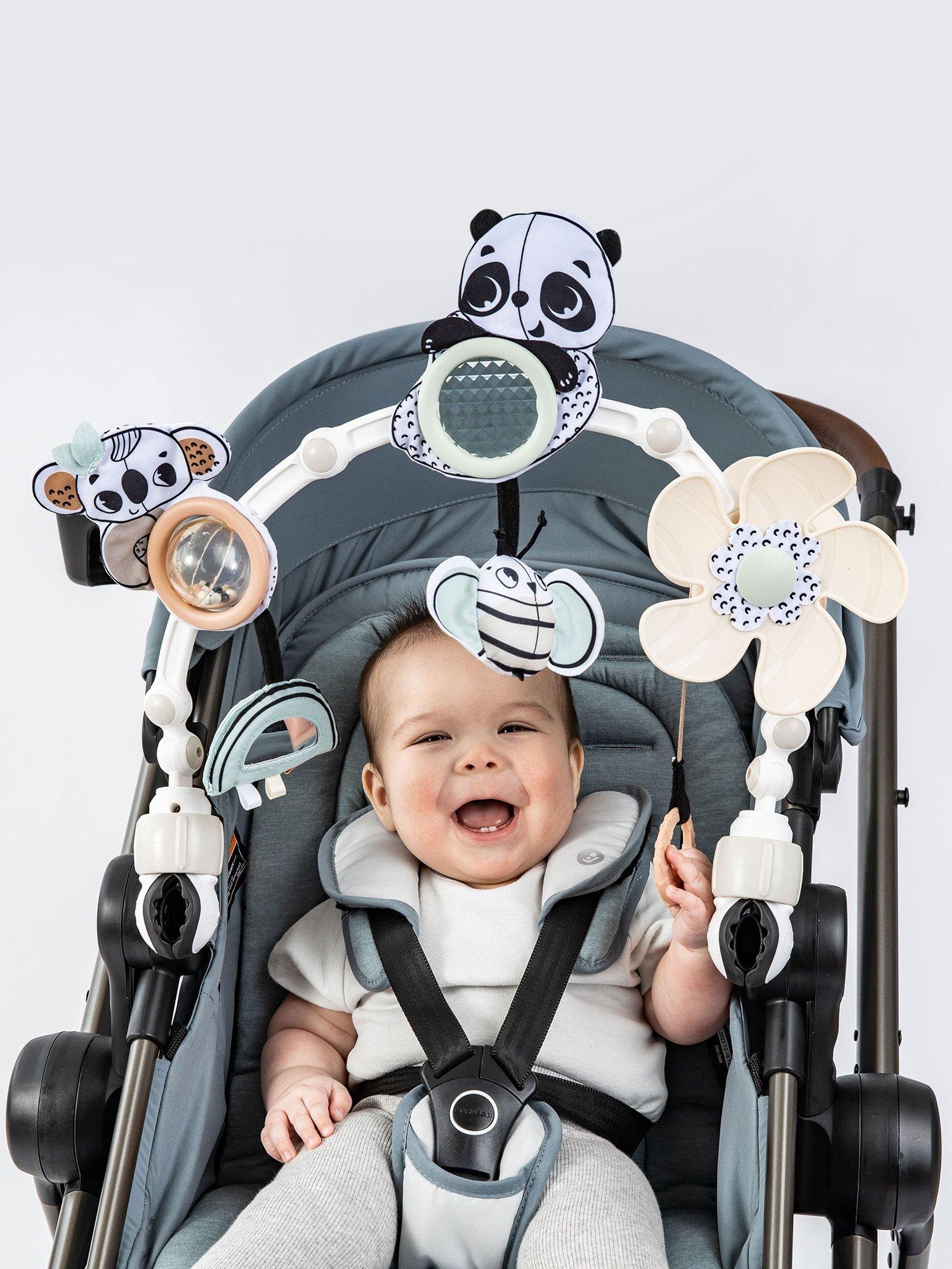Tiny Love’s Décor Sunny Stroll take-along arch offers babies 6 playful activities that provide indoor and on-the-go fun and amusement. With its contrasting black and white colours, this stroller arch stimulates babies’ developing eyesight from day one. It is designed to support two stages of baby development - sensory exploration (0m+) and cause-and-effect learning (5m+).