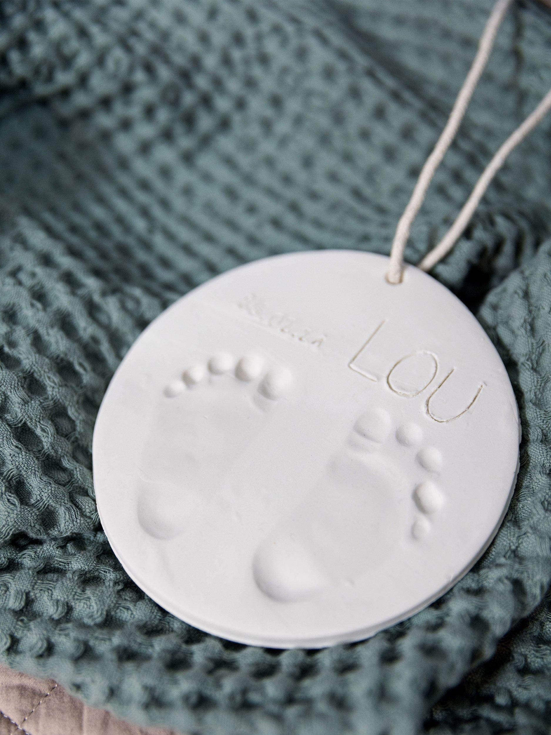This charming memento features a bamboo ring and soft clay that will let you create the imprint of your little one’s hands or feet. The kit includes everything you need to create these precious impressions and, once dry, find the perfect place to hang them up in your home.