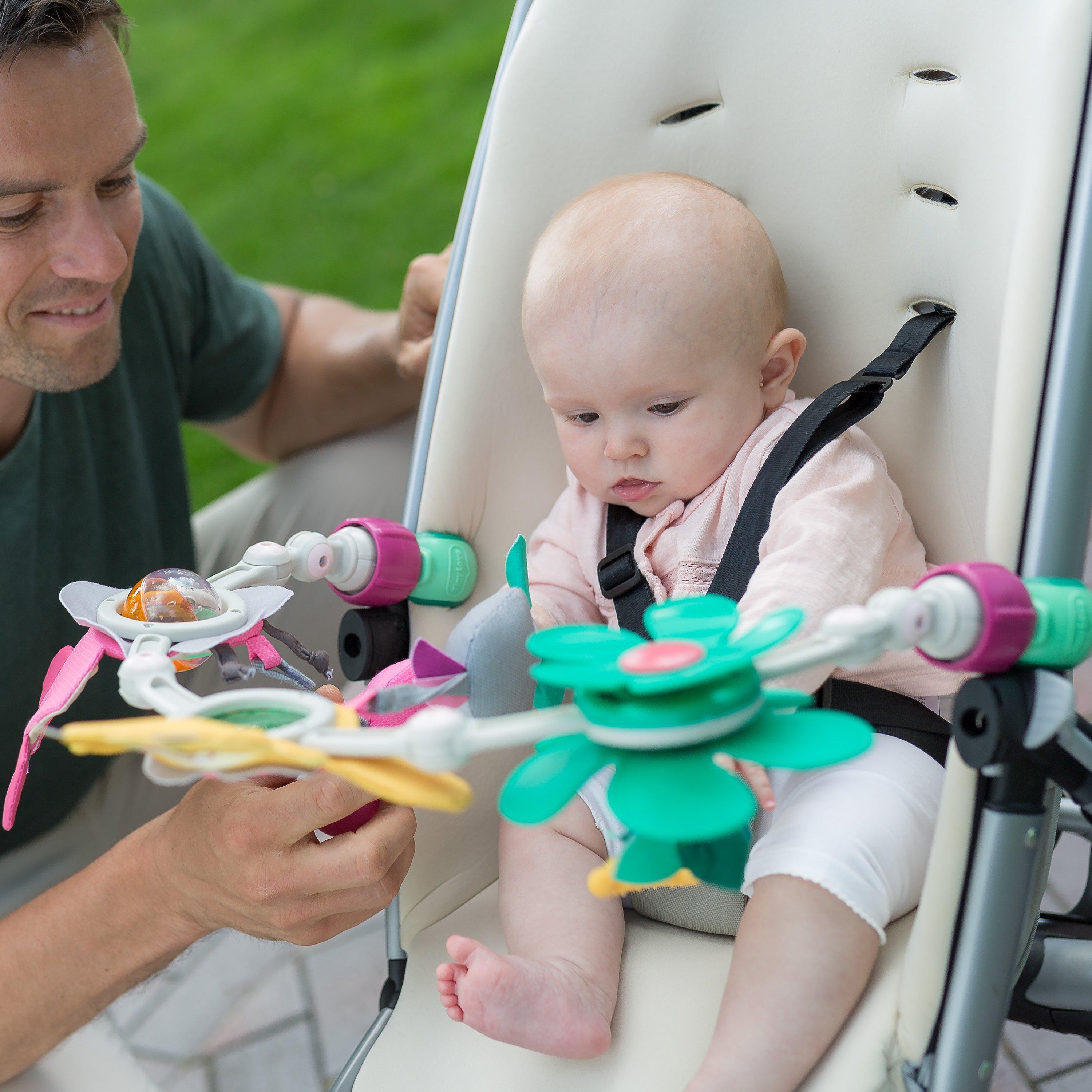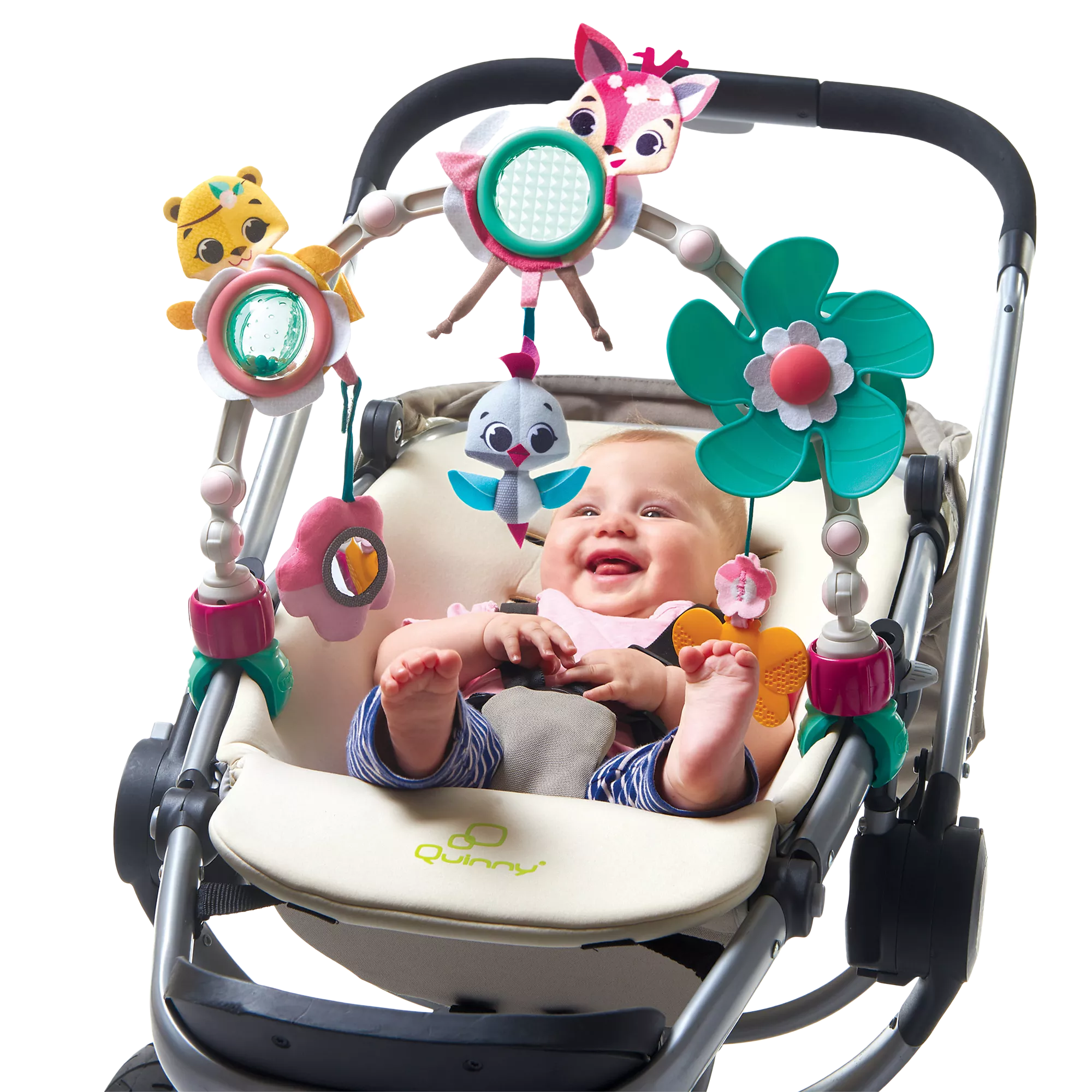 This take-along stroller arch toy from Tiny Love is perfect for keeping baby amused and entertained whilst travelling. The various toys encourage baby's development inclduing sensory exploration from birth, and cause and effect learning from 5 months onwards. A versatile toy that can be attached to the pram or car seat.