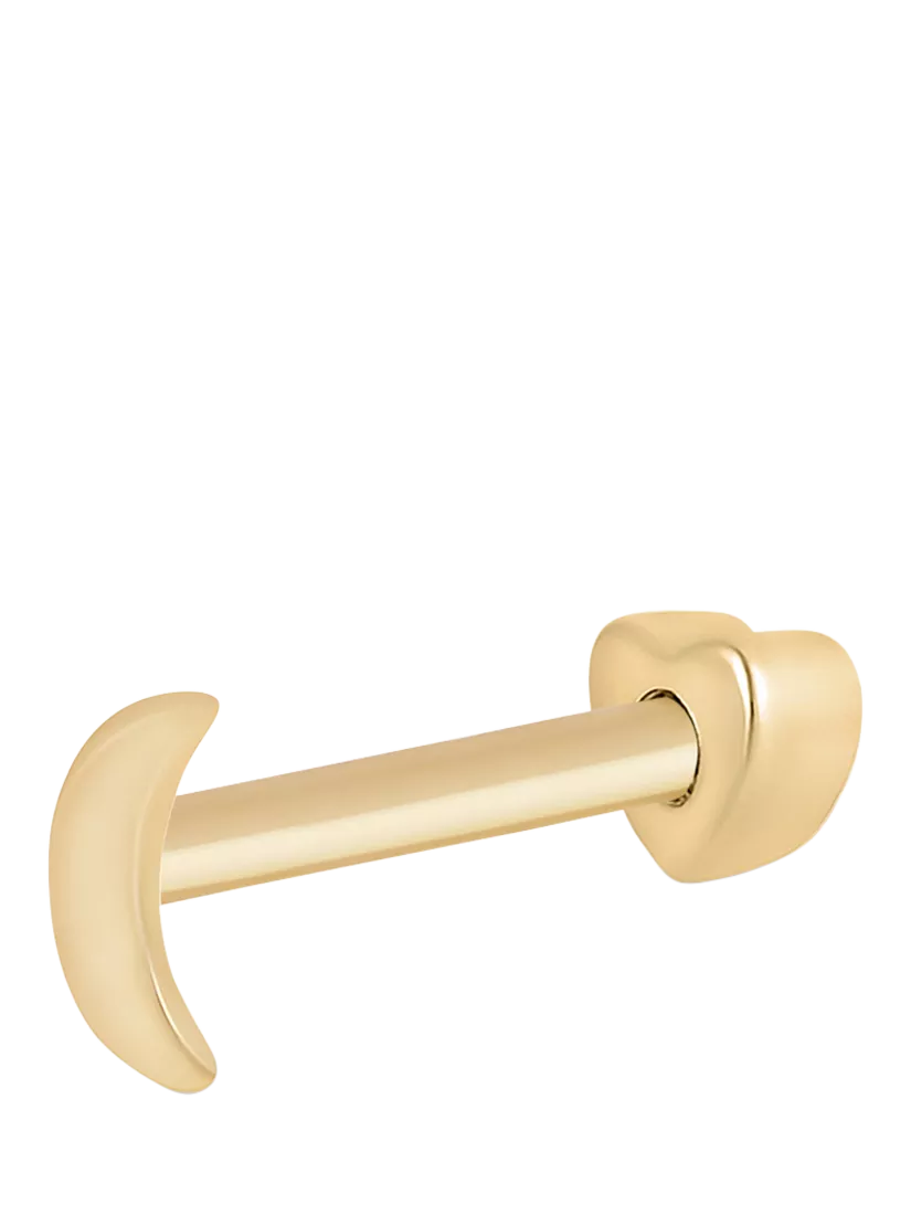 Crescent Moon 9ct gold barbell earring with screw on heart back.