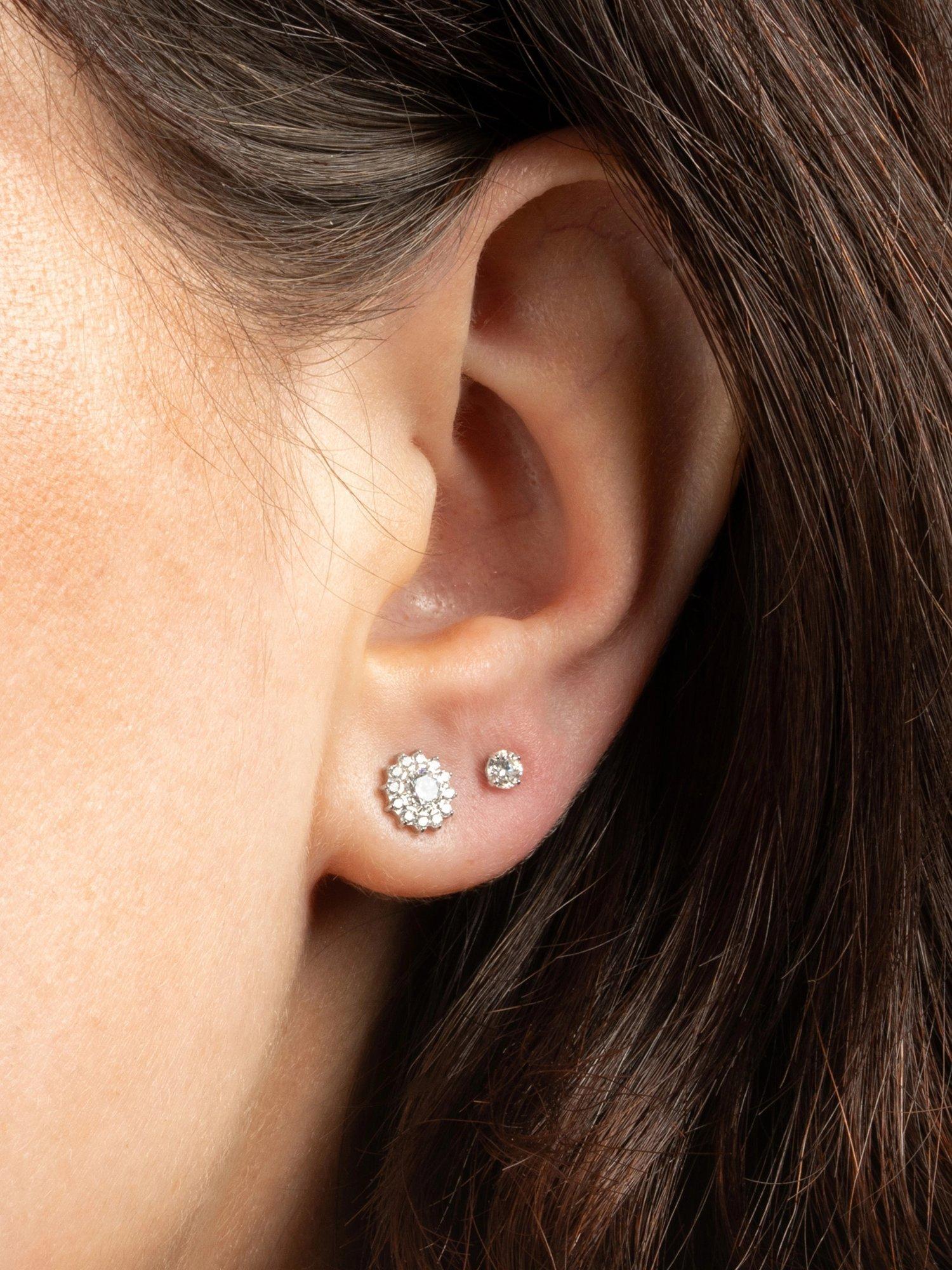 These beautiful earrings have a light-catching flower design with a soft, detailed feel. Set with clear cubic zirconia stones for a gentle shimmer. Suitable for pierced ears only.