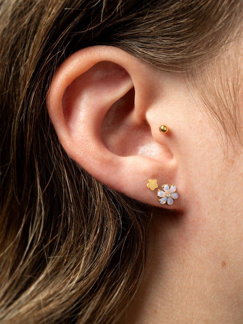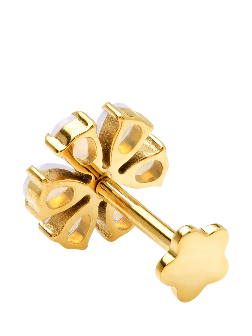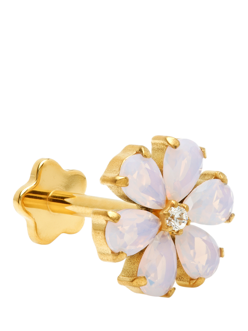 Introducing the Iris Gemstone Flower Stud, a cute and subtle addition to your jewellery collection. This versatile piece can be worn in a variety of piercings, including lobe, helix, conch, flat, and tragus.