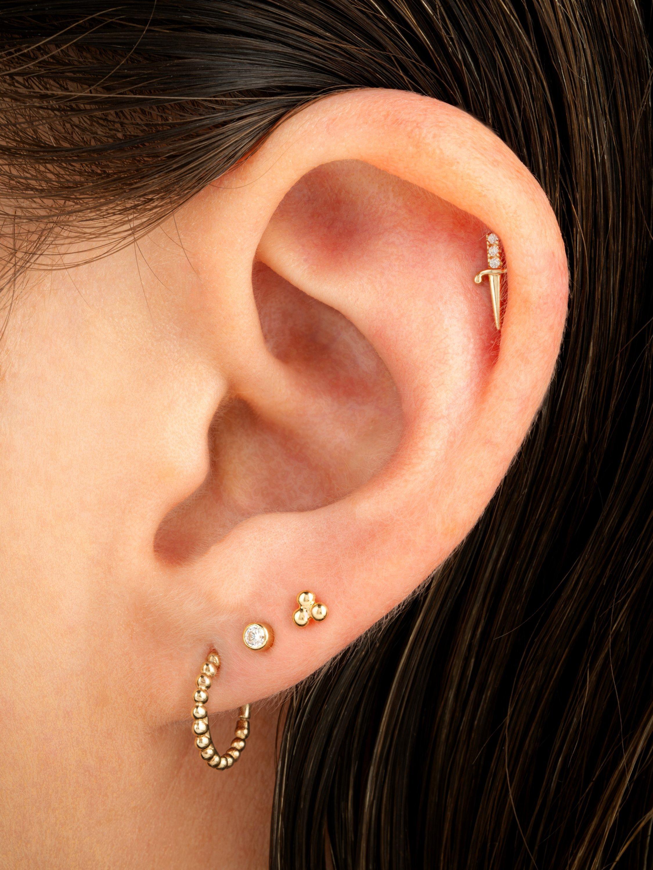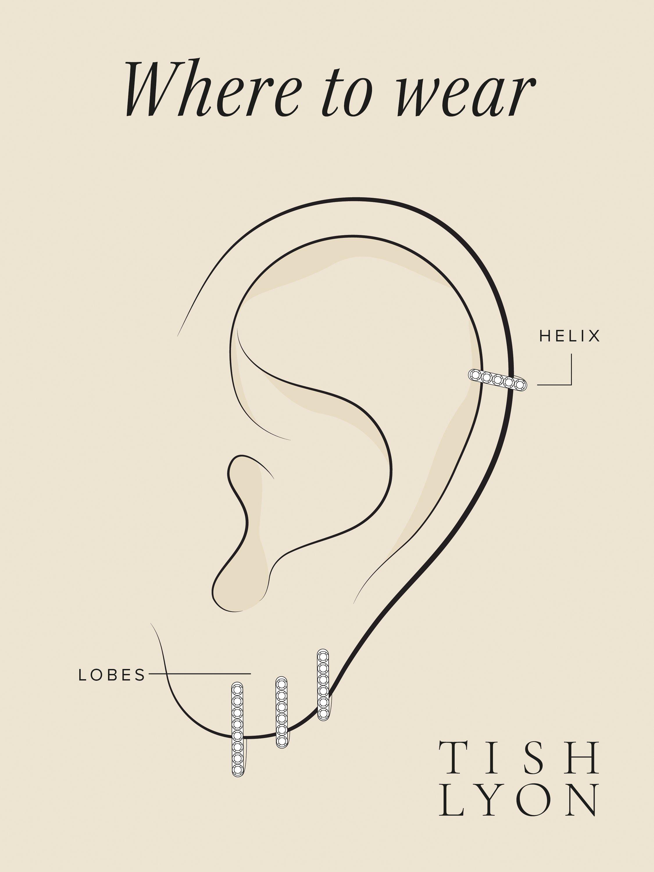This style can be worn on the ear or the nose. Perfect for nostril, lobe & helix 8mm, lobe 10mm. Size is measured by the inner diameter of the ring. Sold individually (select 2 for a pair).