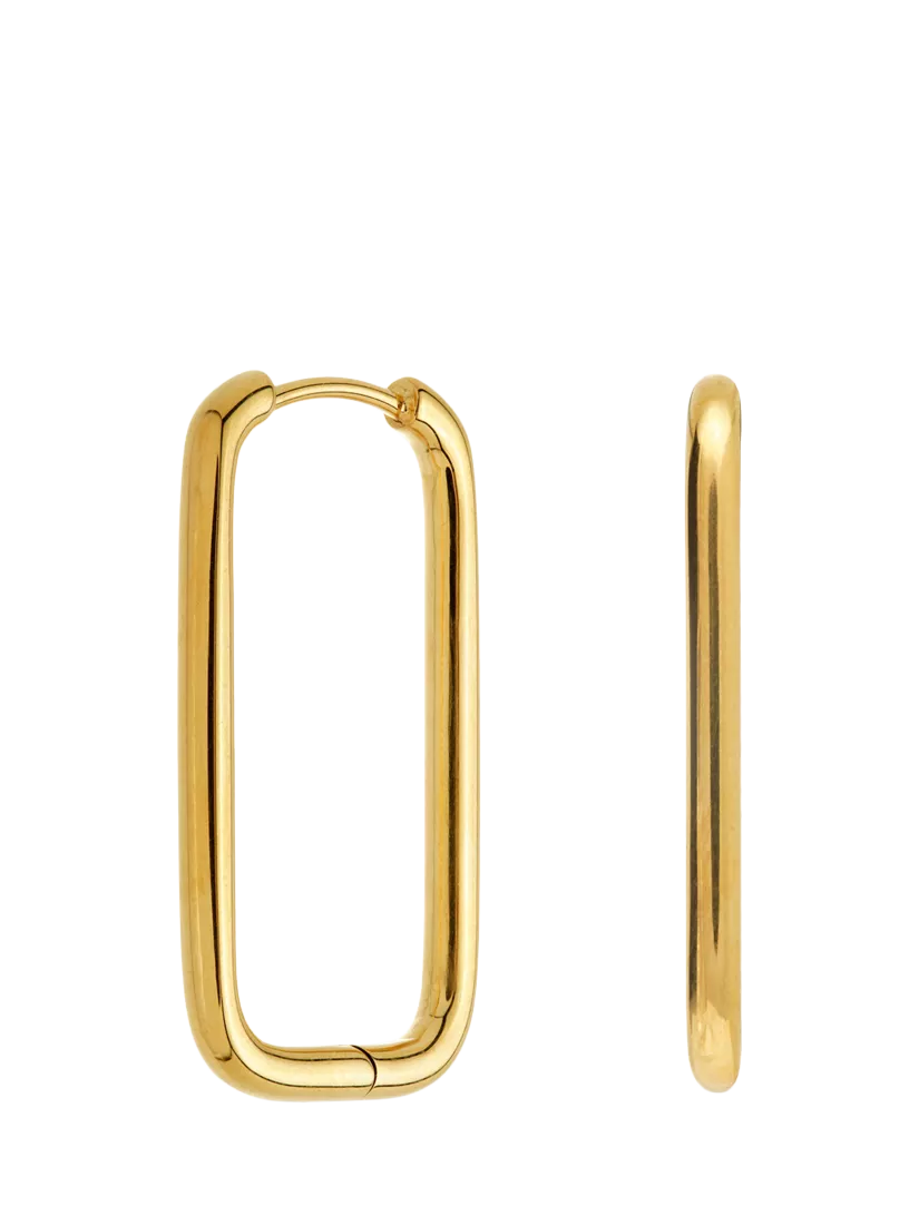 Named after Maya, the goddess of illusion, these plated Titanium Rectangle Hoop Earrings are a cubistic centrepiece for your lobes.