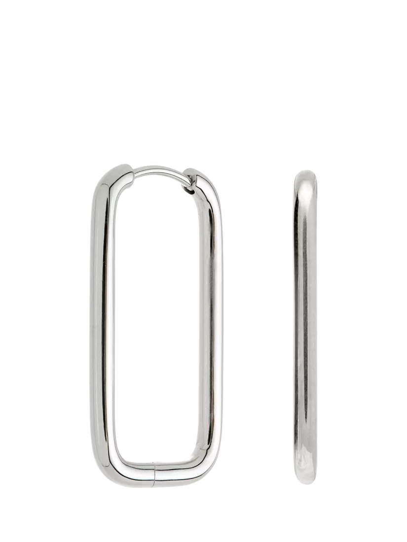 Named after Maya, the goddess of illusion, these plated Titanium Rectangle Hoop Earrings are a cubistic centrepiece for your lobes.
