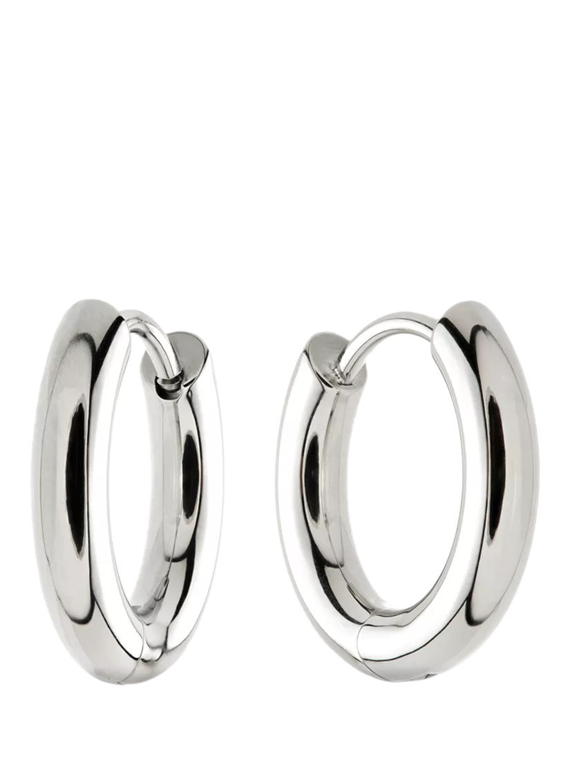 With their softly rounded shape and secure hinged closure, these stylish hoops are designed to sit comfortably in the lobe for an effortless, everyday look. Available in polished platinum or gold finishes. Crafted from medical-grade titanium with a high-shine PVD coating. Suitable for pierced ears only.