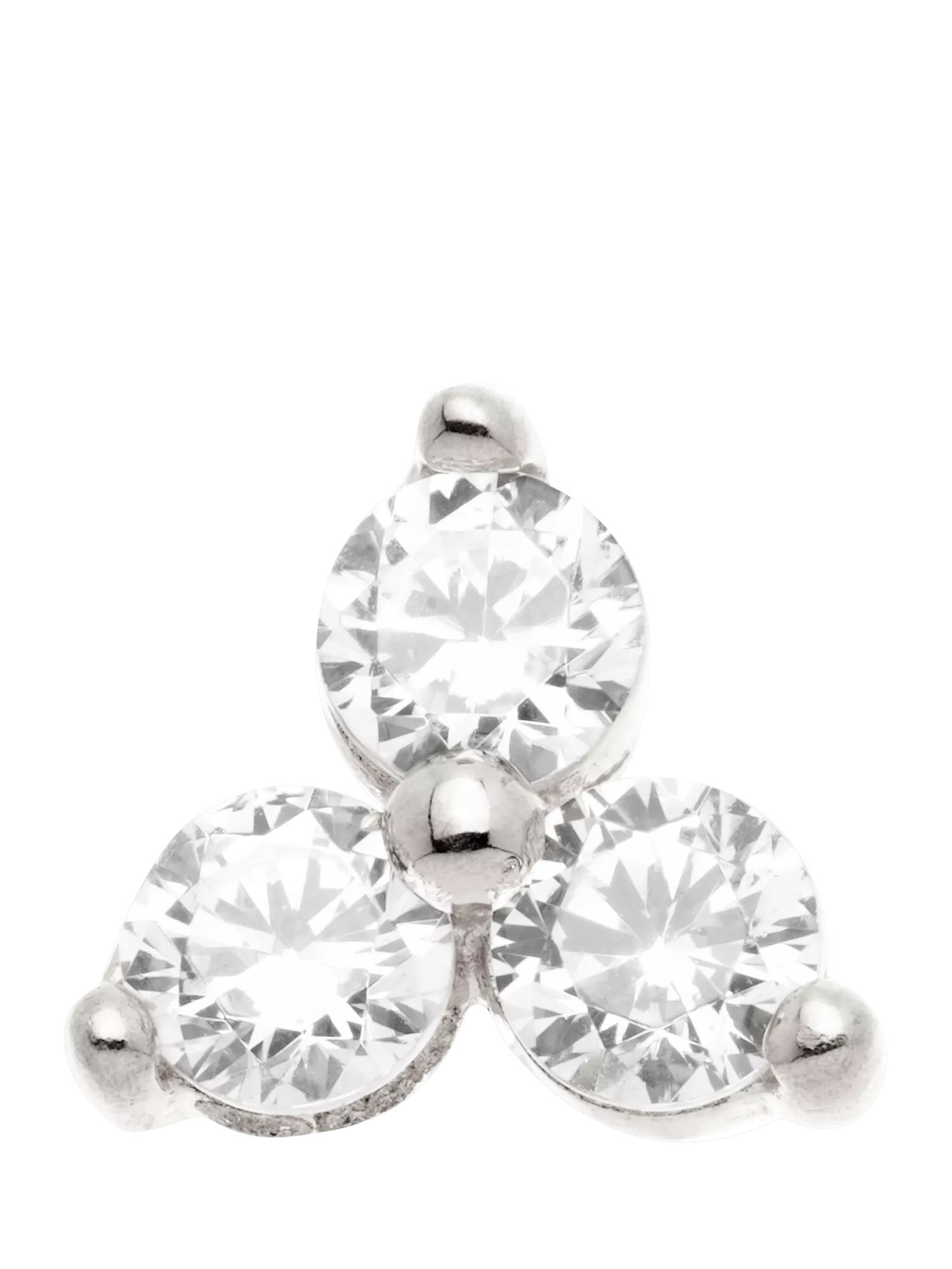 This shimmering trinity attachment is a stylish and creative addition to add to your piercing collection. Tish Lyon screw-in flatback stud earrings are designed to be secure, comfortable and durable. Crafted from 14ct solid gold.