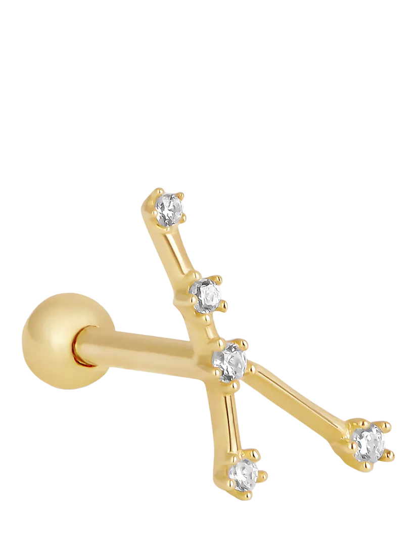 This exquisite 9ct Solid Gold jewelled zodiac constellation barbell earring will make a statement in your collection and relates to your own personal zodiac sign.