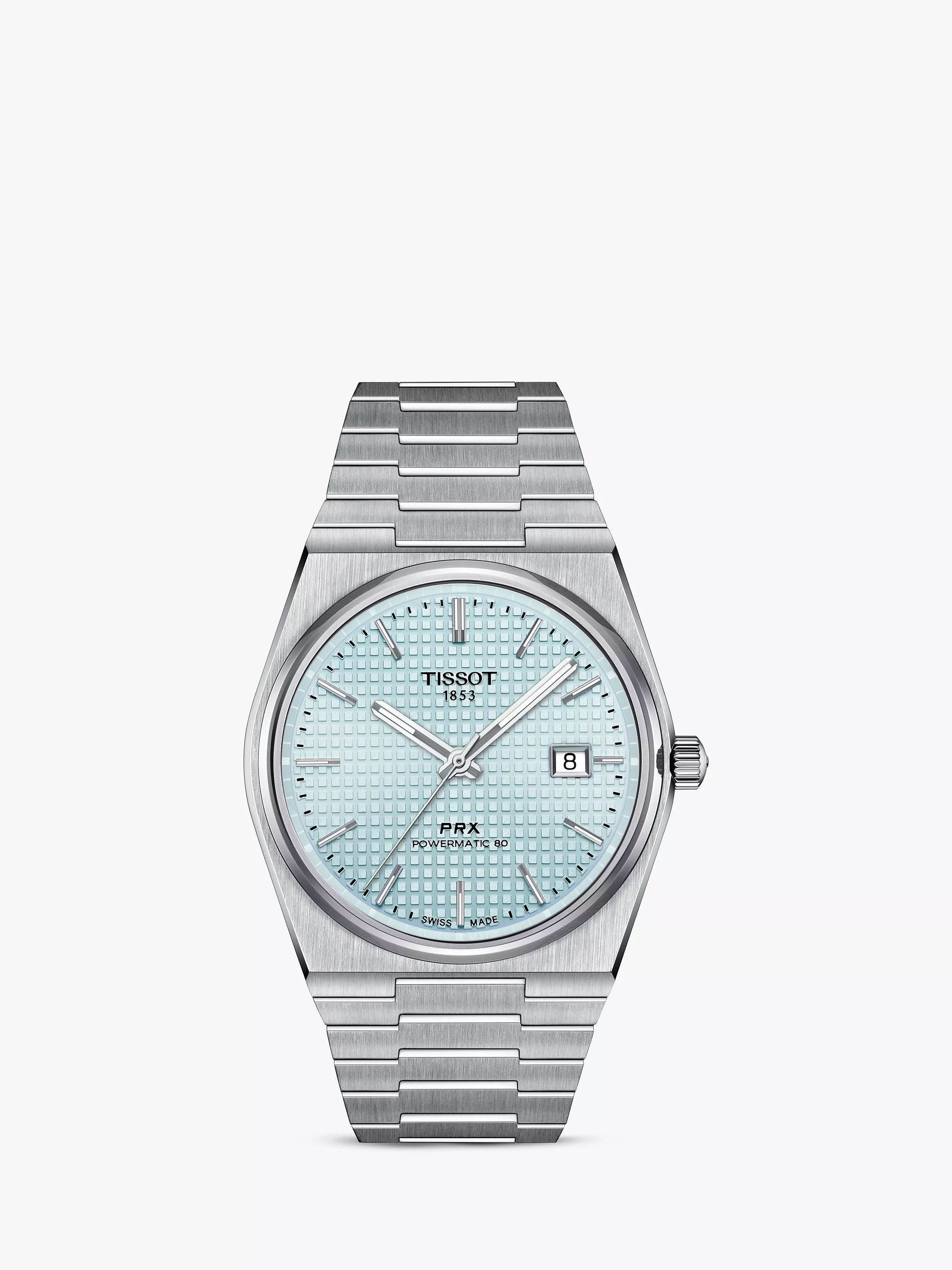 TissotT1374071135100 Unisex PRX Powermatic 80 Waffle Dial Bracelet Strap Watch, Ice Blue/Silver