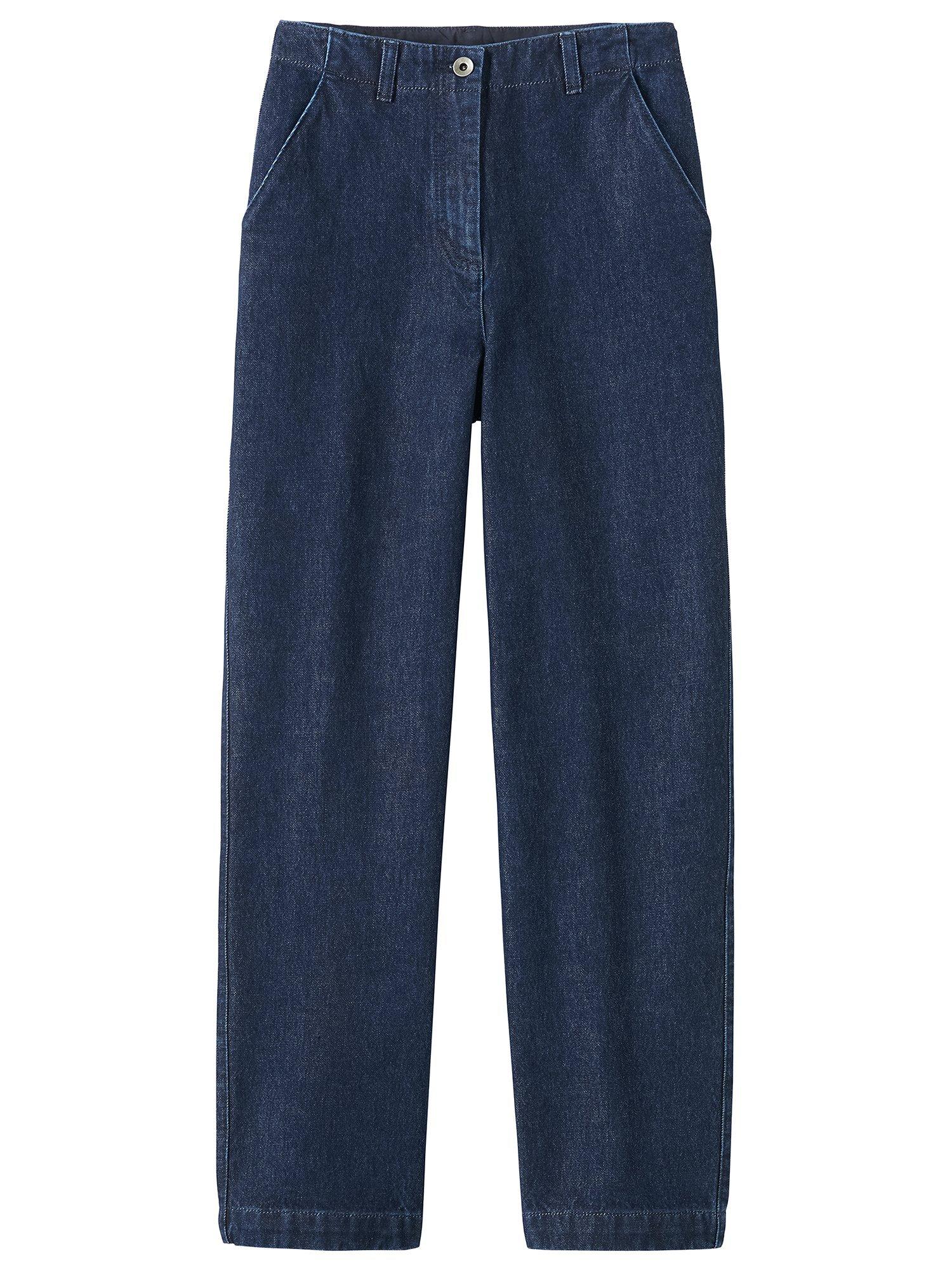 Made from organic cotton denim with added stretch for comfort, these jeans are a versatile staple with a straight cut and mid-rise waist. They are indigo-dyed and finished with complementary silver-toned hardware.