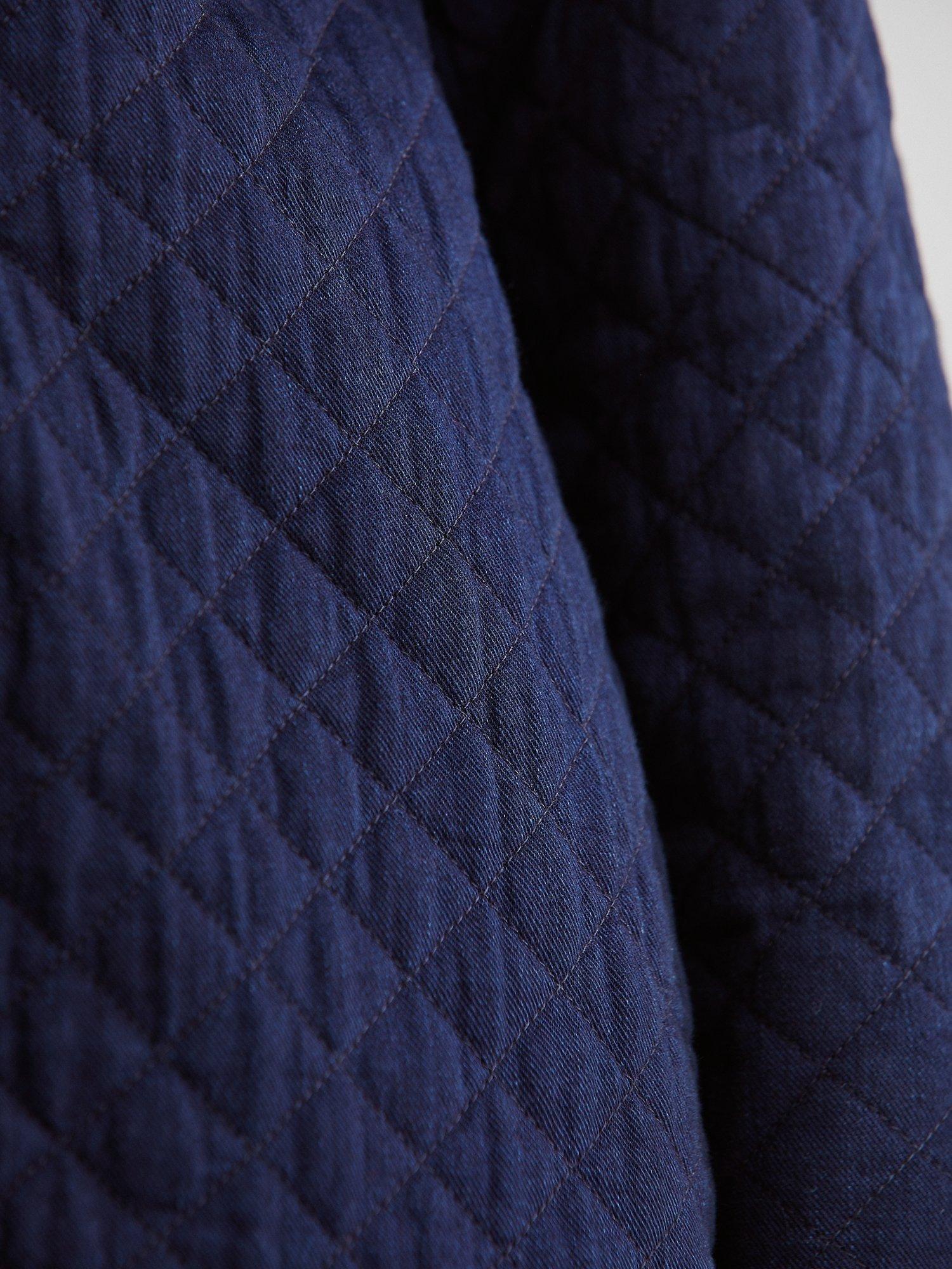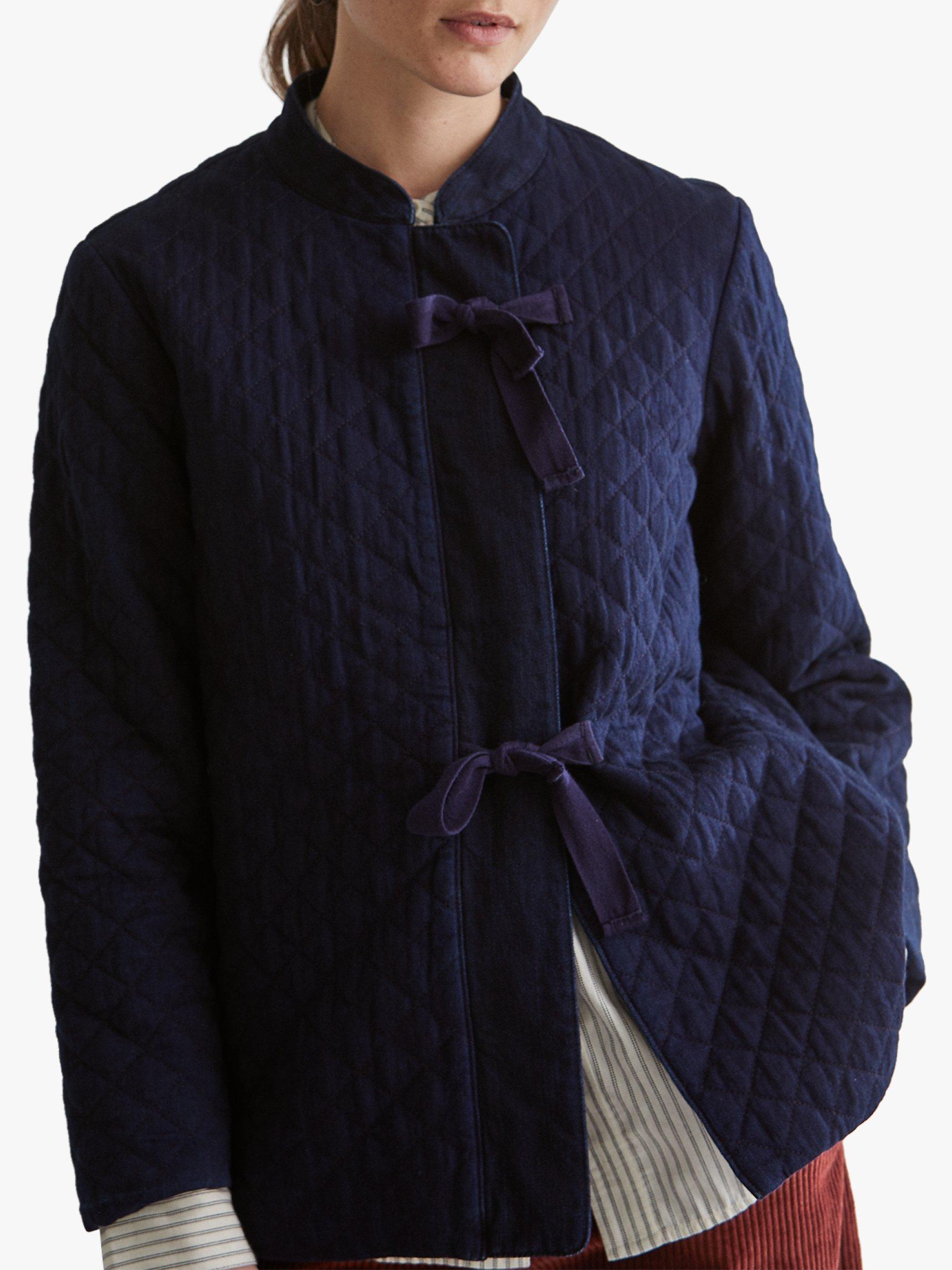Made from quilted cotton from a Japanese woven and dyed cloth, this jacket has a simple straight-cut that slips effortlessly over pared-back pieces. It has a neat mandarin collar, side pockets and a concealed button placket with herringbone tie fastenings for a touch of detail.