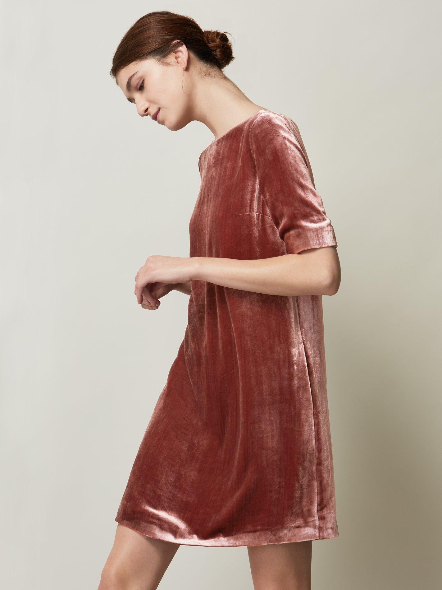 Add a fabulous velvety finish to your evening ensemble with this stunning shift dress from Toast.