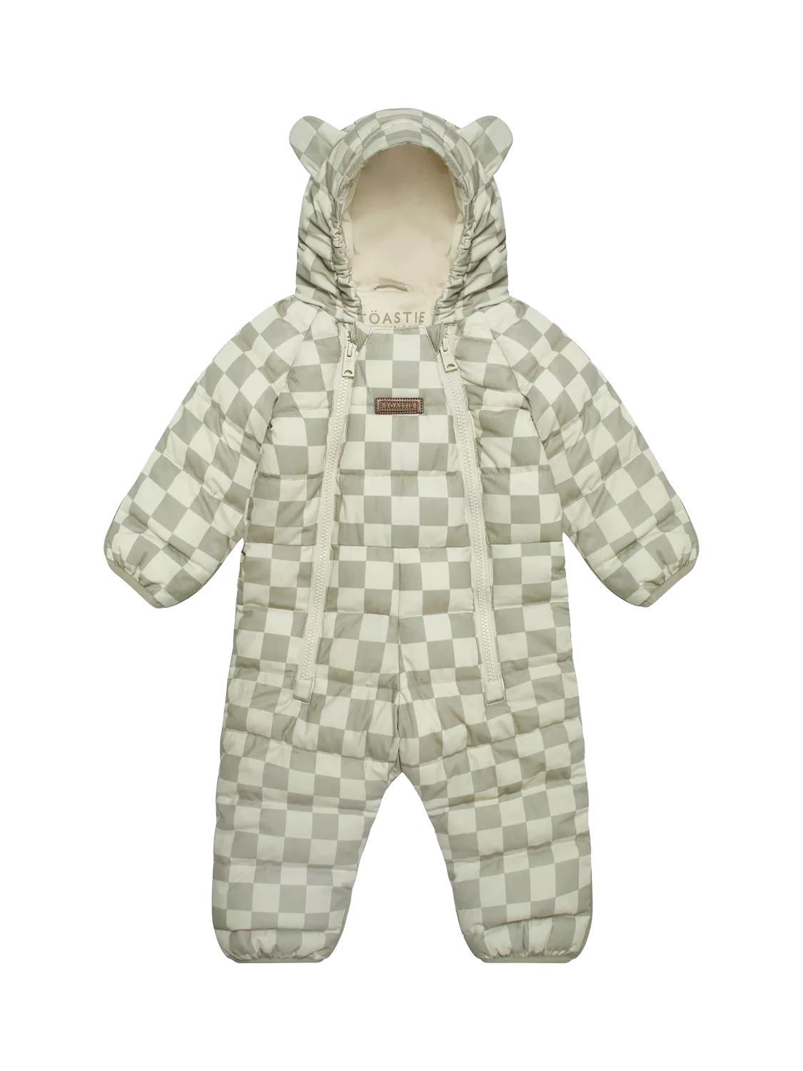 The Cloud Onesie is your baby's best-loved companion for cold weather adventures. Crafted using Sorona faux-down fill and finished with a soft cotton jersey-lined hood and playful animal ears, this snowsuit is as practical as it is adorable. The double zip ensures easy changes, while fold-over mitts and feet keep your little explorer snug and cosy. Shower resistant and breathable for ultimate comfort, the Cloud Onesie is winter-ready in every way.