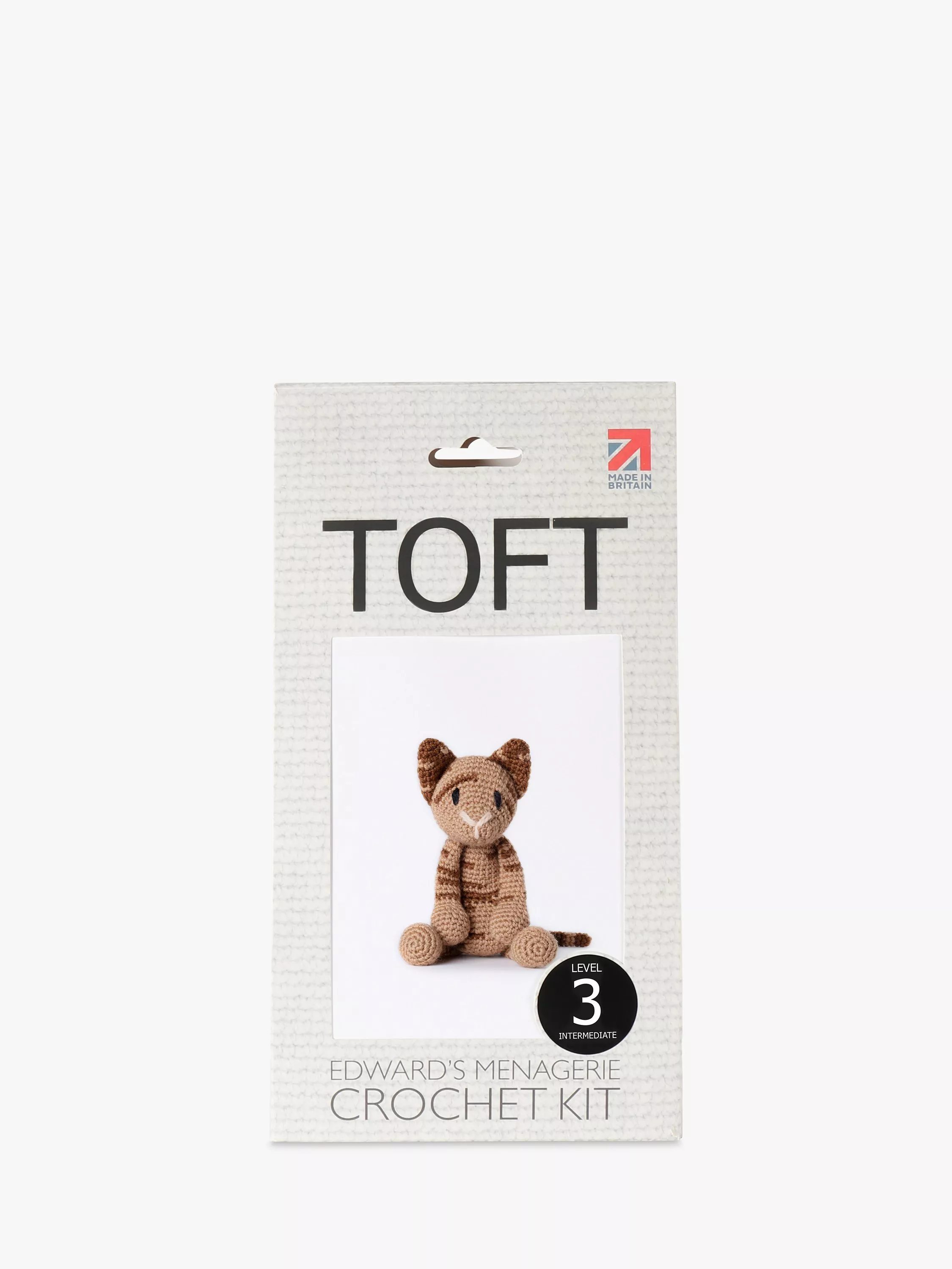Each boxed Lulu Red Tabby kit includes everything needed to complete the project: 100% luxury wool, crochet hook, needle, stuffing, eye threads and a pattern including a QR video link for lessons for all the techniques.