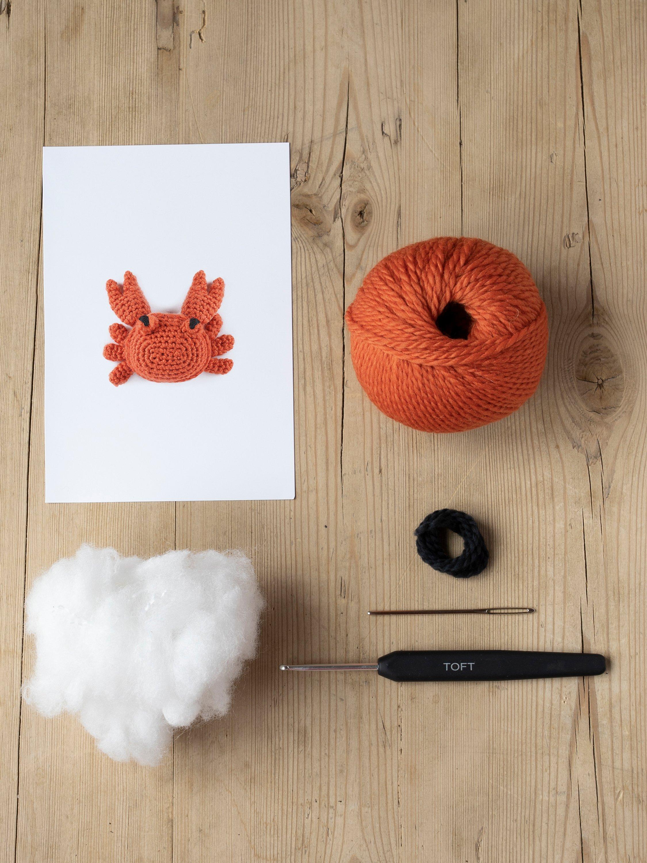Part of the Edward's Menagerie collection of amigurumi crochet toys designed by best-selling author Kerry Lord, this kit is suitable for complete beginners and contains everything you'll need to crochet the crab. It includes Toft's luxury British yarn along with the hi-loft polyester toy stuffing to fill your animal, a length of black yarn for the eyes, an ergonomic 3mm crochet hook, a wool needle for sewing-up and full instructions to guide you through the process.