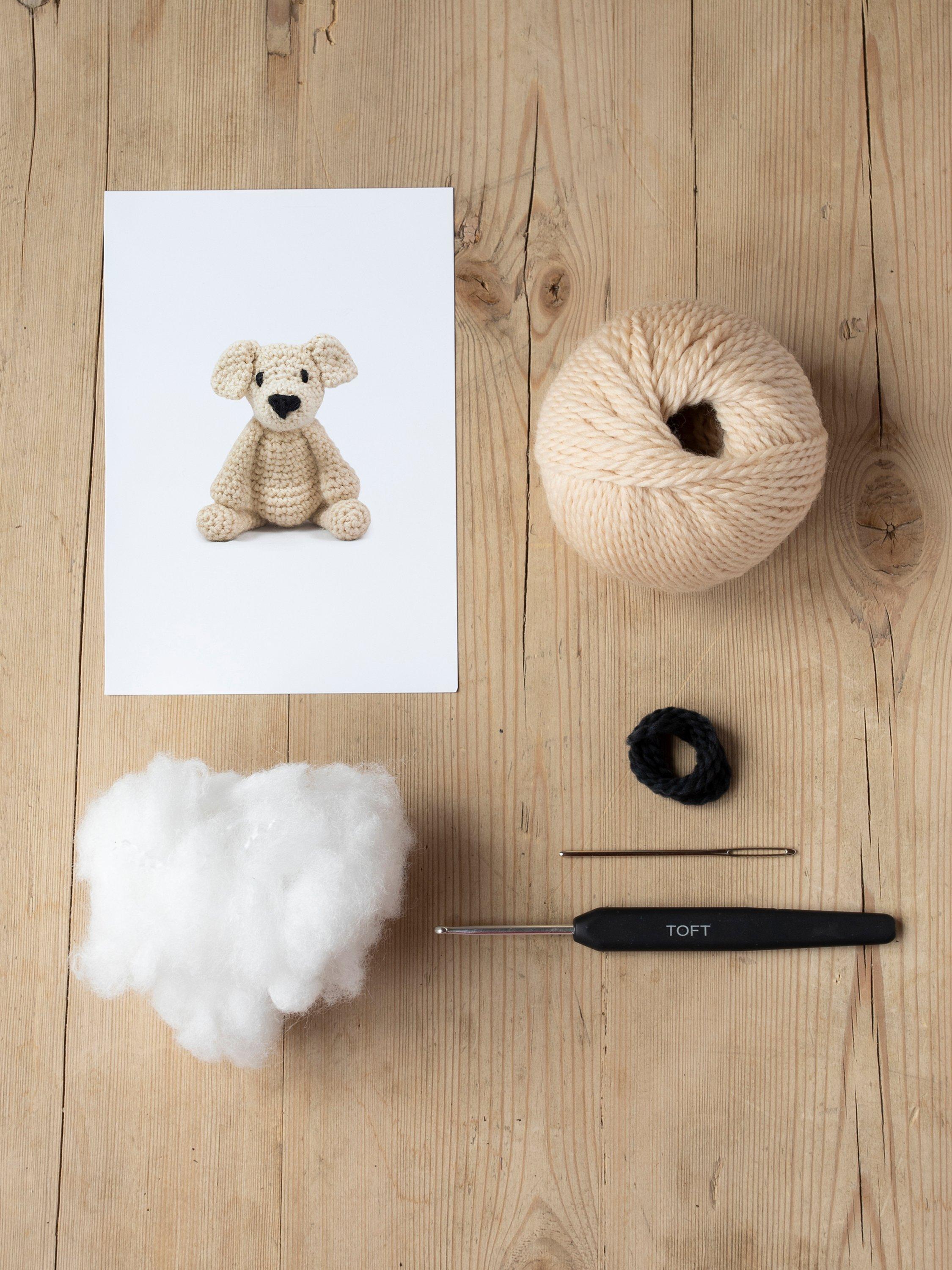 Pop the kettle on, put your feet up and crochet the cute and cuddly mini Eleanor the Labrador with this fun kit from Toft.