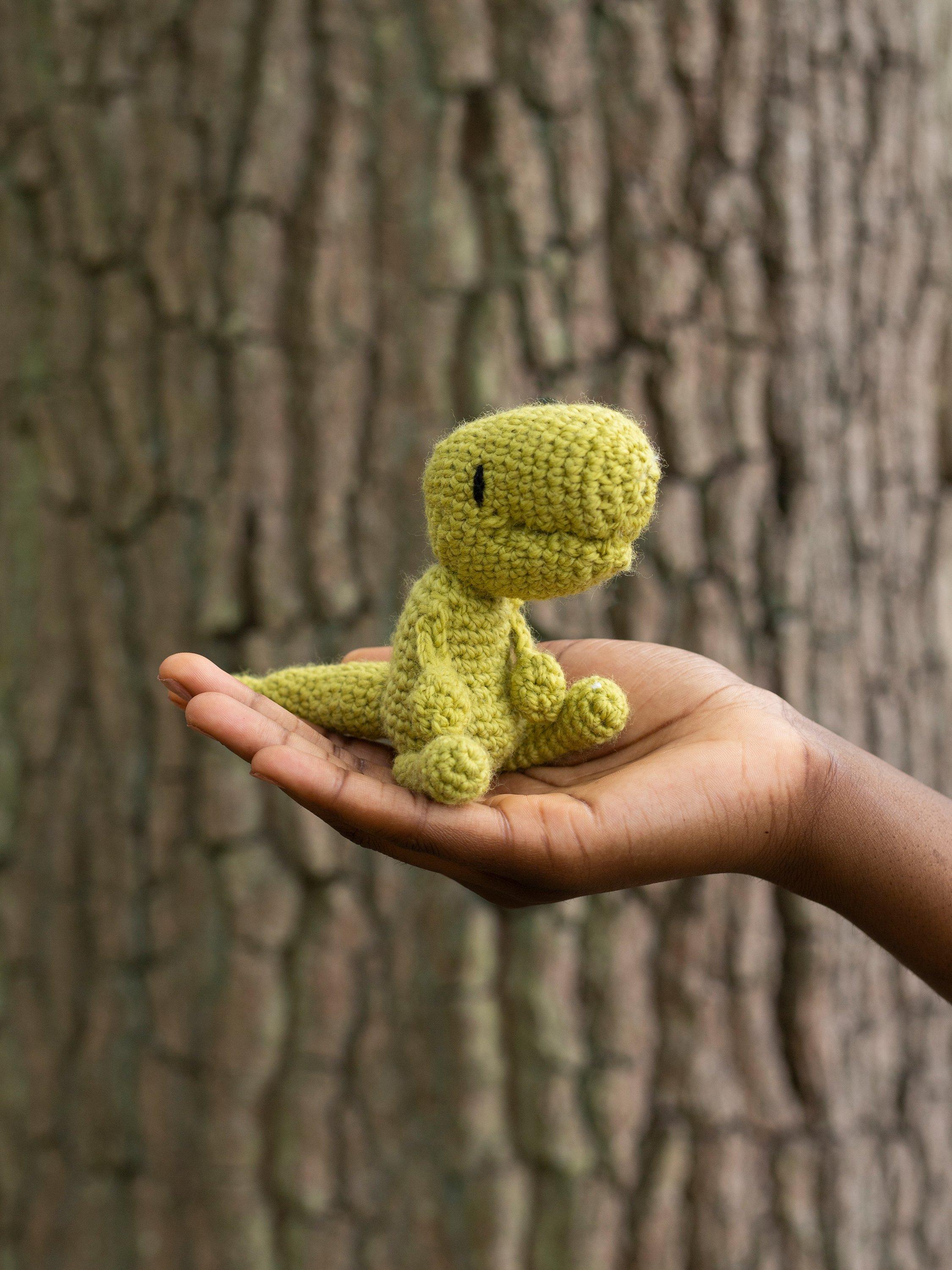 Pop the kettle on, put your feet up and crochet the cute and cuddly mini Gregor the T-Rex with this fun kit from Toft.