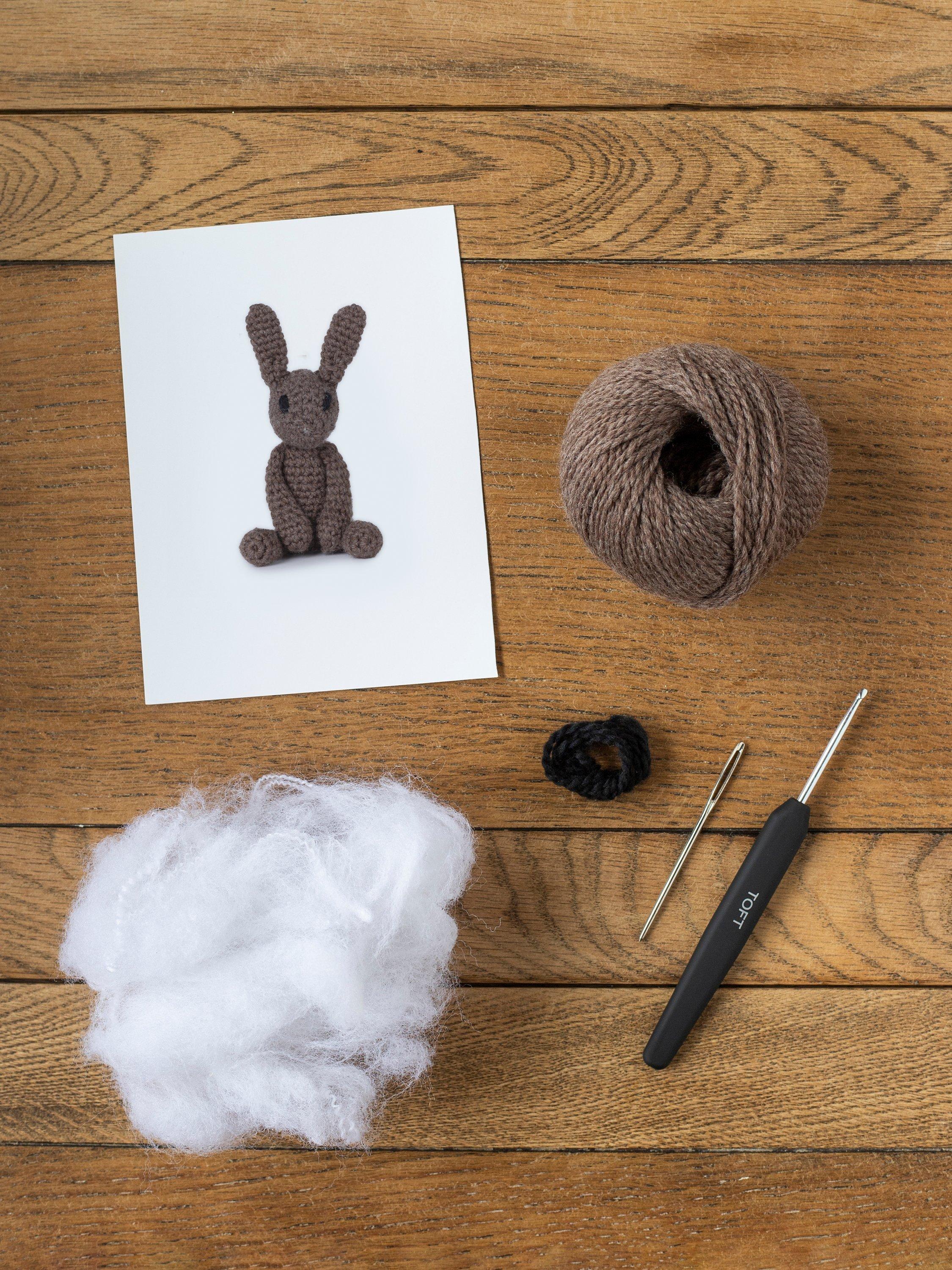 It includes Toft's luxury British yarn, hi-loft recycled polyester toy stuffing, crochet hook and wool needle for sewing up and full instructions to guide you through the process.