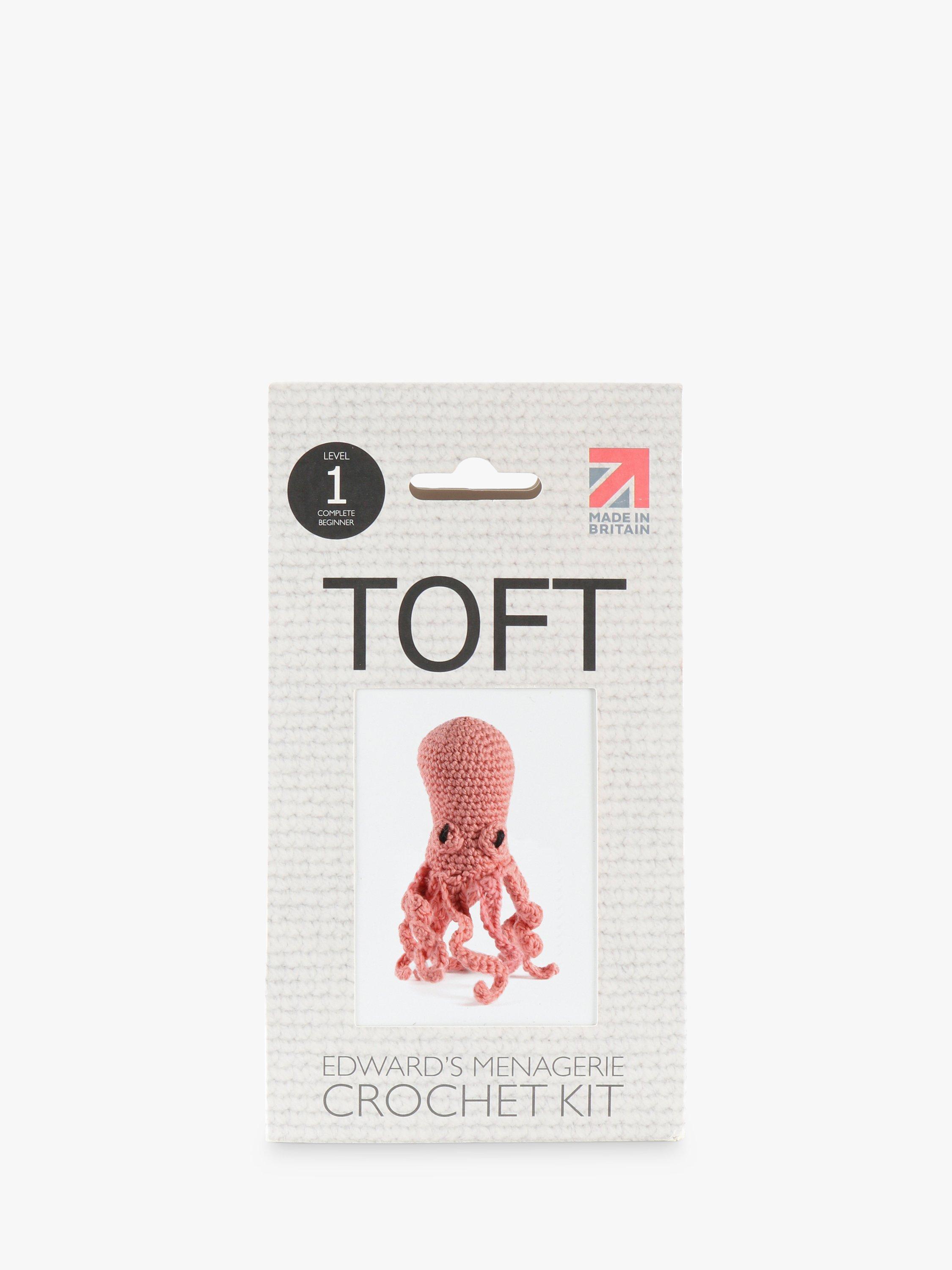 Part of the Edward's Menagerie collection of amigurumi crochet toys designed by best-selling author Kerry Lord, this kit is suitable for complete beginners and contains everything you'll need to crochet the octopus. It includes Toft's luxury British yarn in along with the hi-loft polyester toy stuffing to fill your animal, a length of black yarn for the eyes, a crochet hook, a wool needle for sewing-up and full instructions to guide you through the process.
