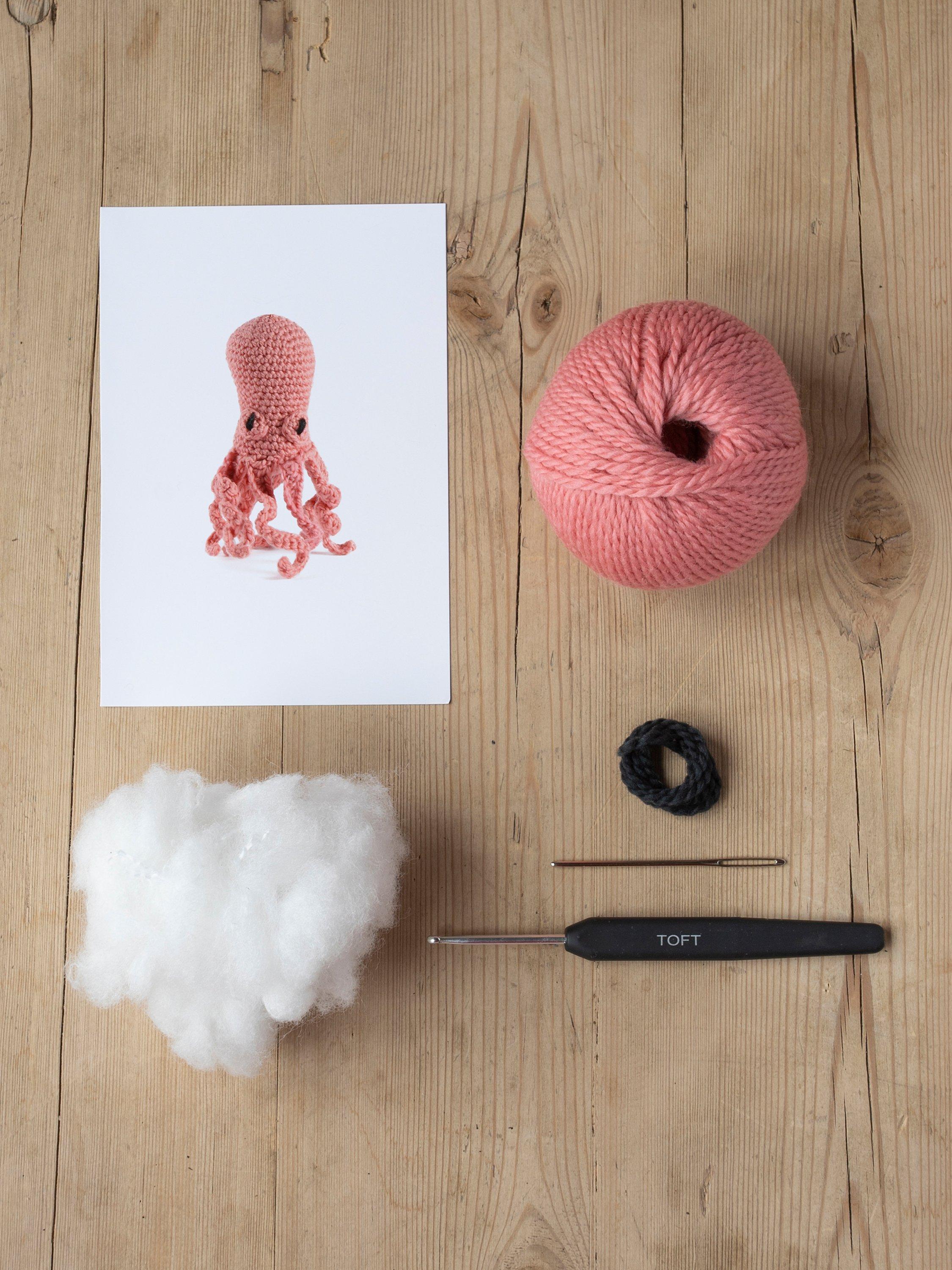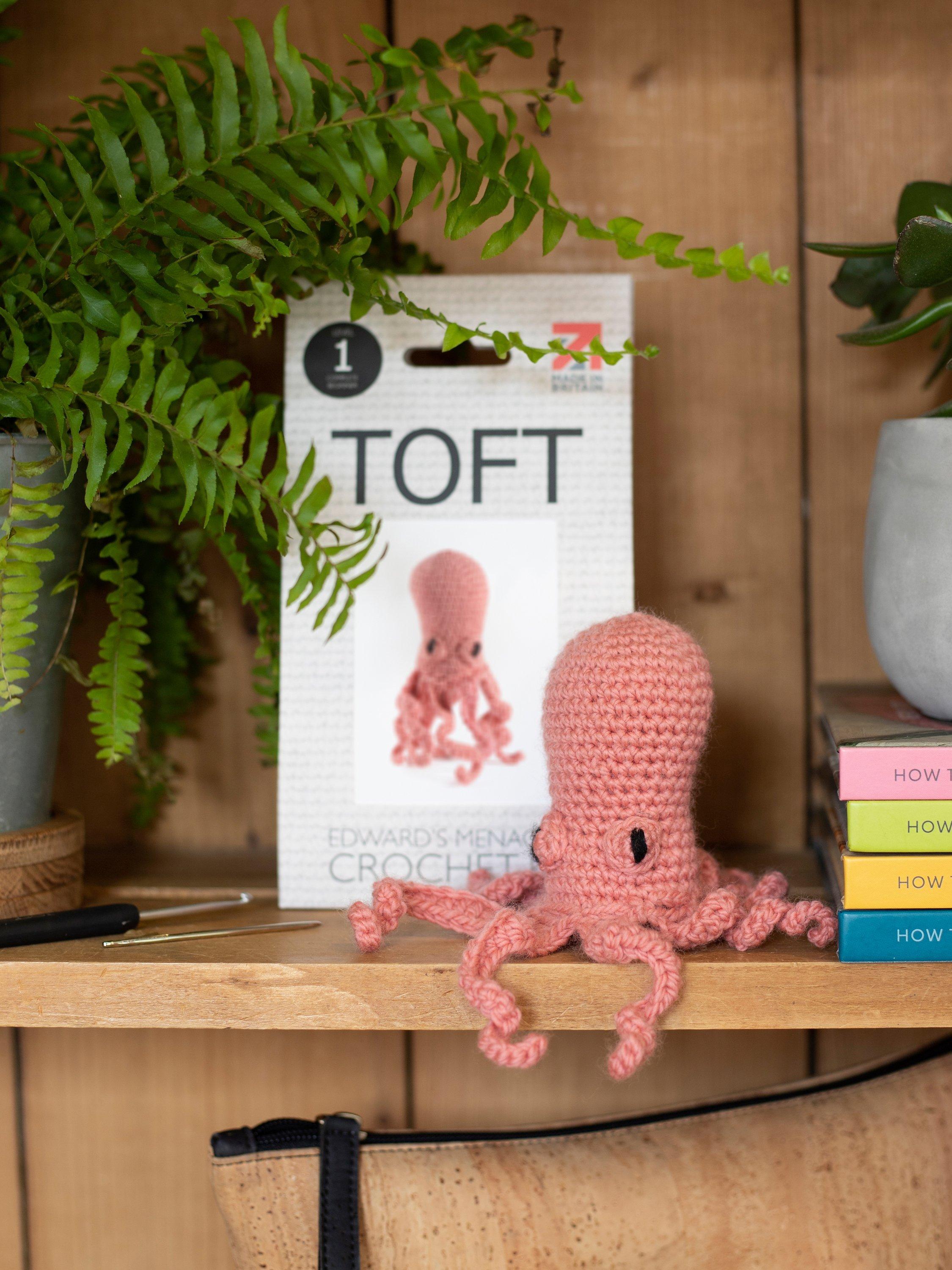 Pop the kettle on, put your feet up and crochet the cute and cuddly mini Orla Octopus with this fun kit from Toft.