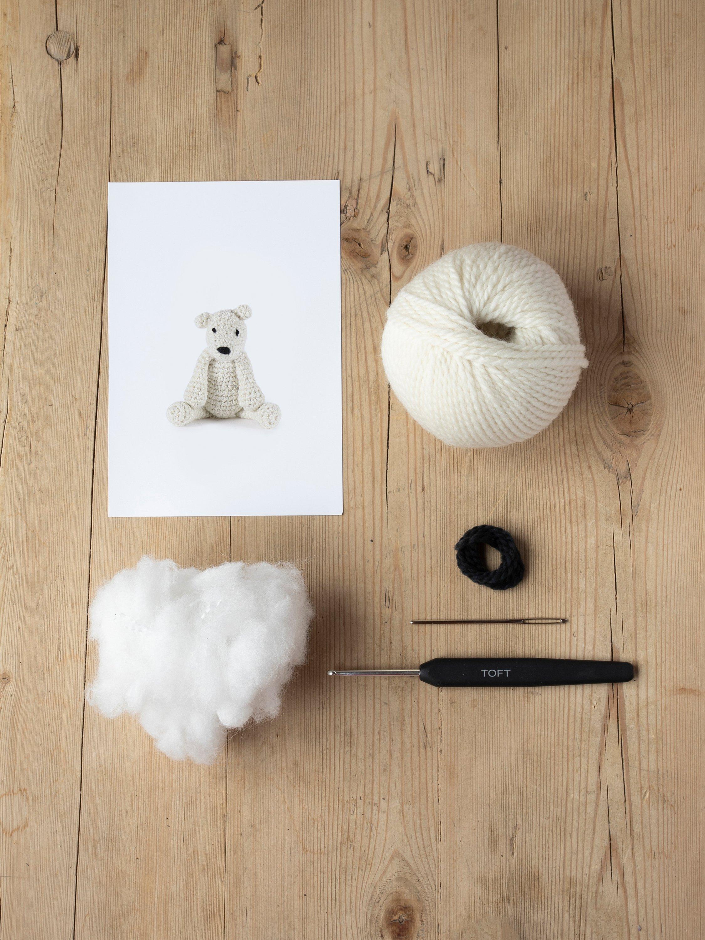 Pop the kettle on, put your feet up and crochet the cute and cuddly mini Piotr Polar Bear with this fun kit from Toft.