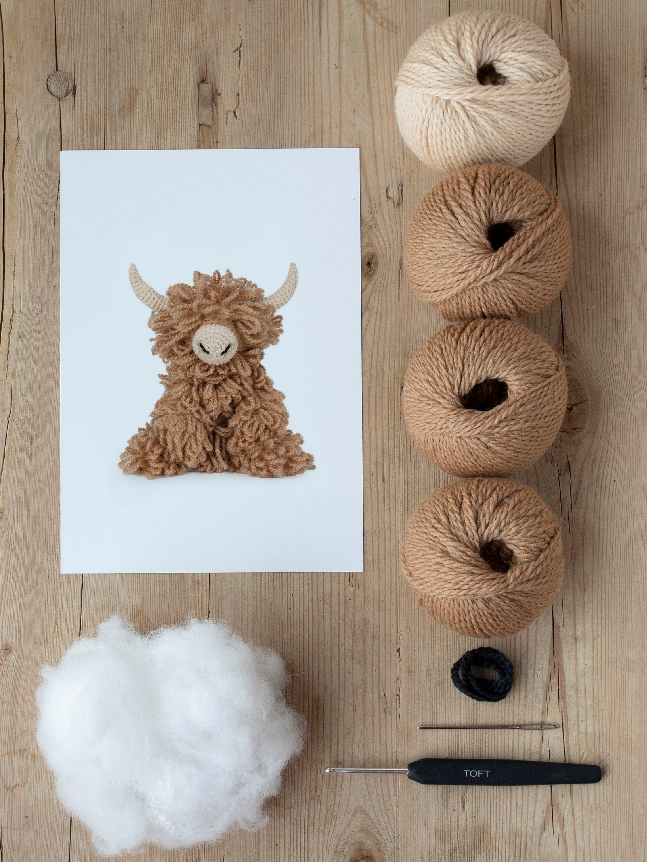 Crochet the super cute and cuddly Morag the highland cow with this fun crochet kit from Toft.