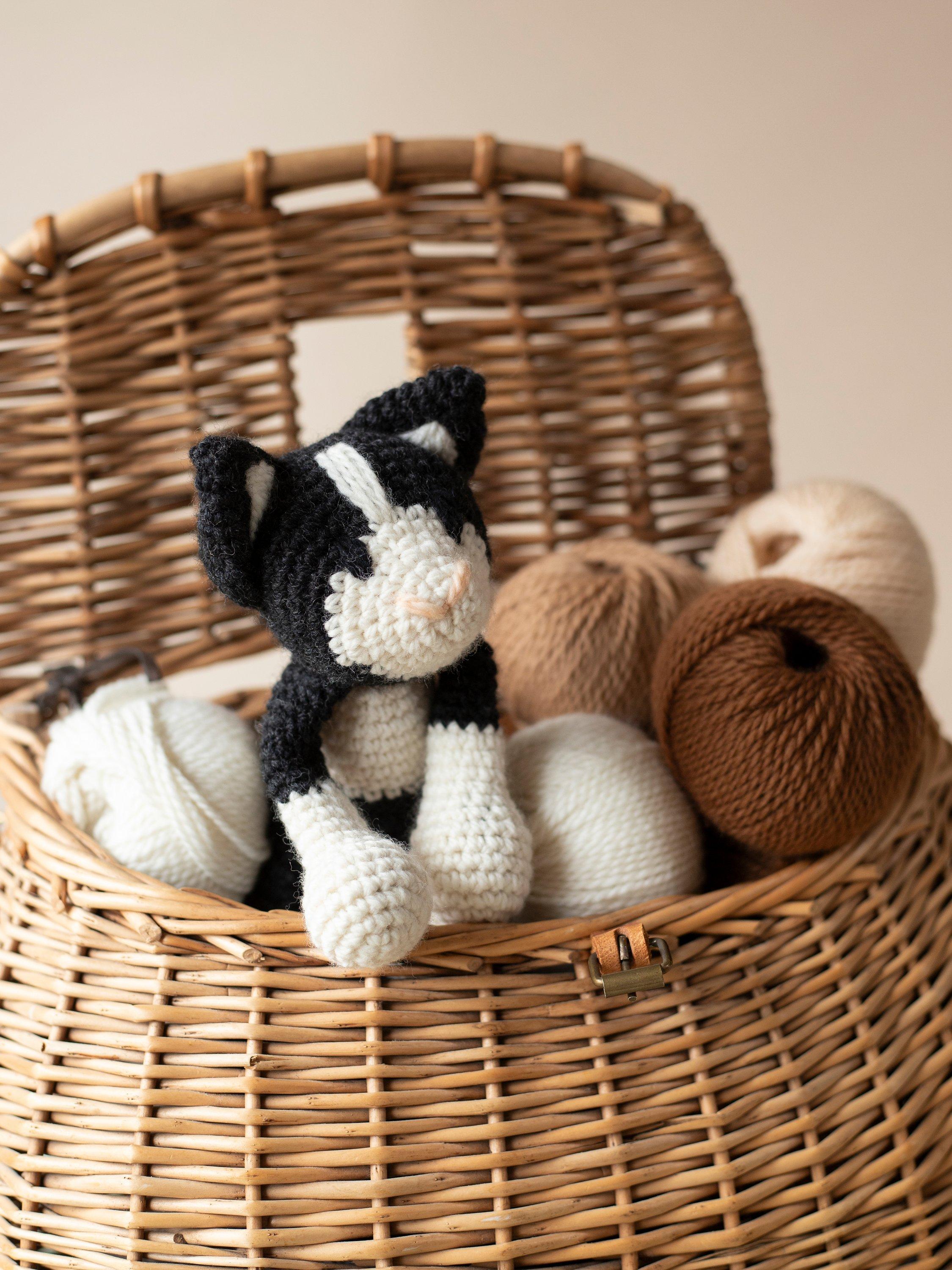 Each boxed Paddy Cat kit includes everything needed to complete the project: 100% luxury wool, crochet hook, needle, stuffing, eye threads and a pattern including a QR video link for lessons for all the techniques.