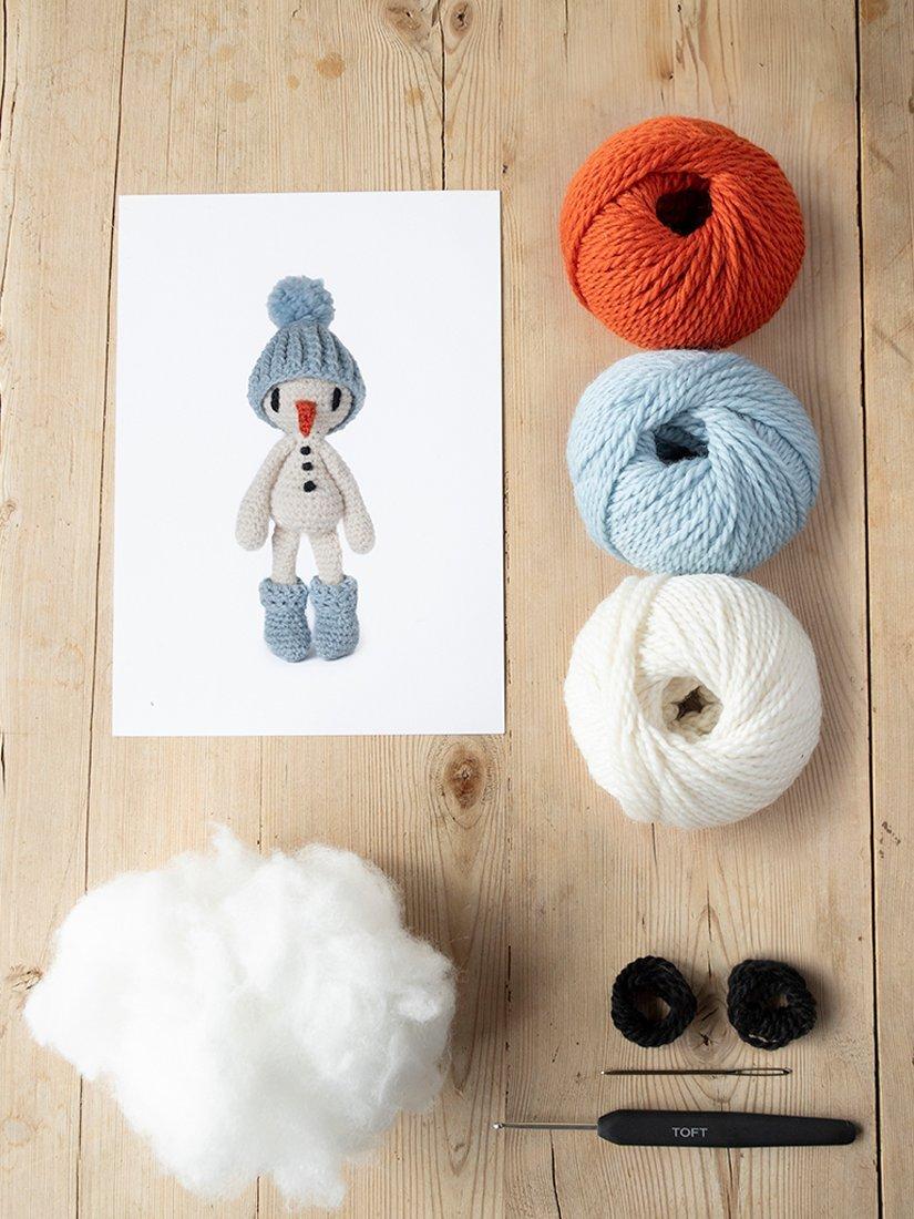 Suitable for complete beginners, this kit contains everything you'll need to create a cute snowman in hat and boots, including thread, needle, yarn, crochet hook, and toy stuffing.