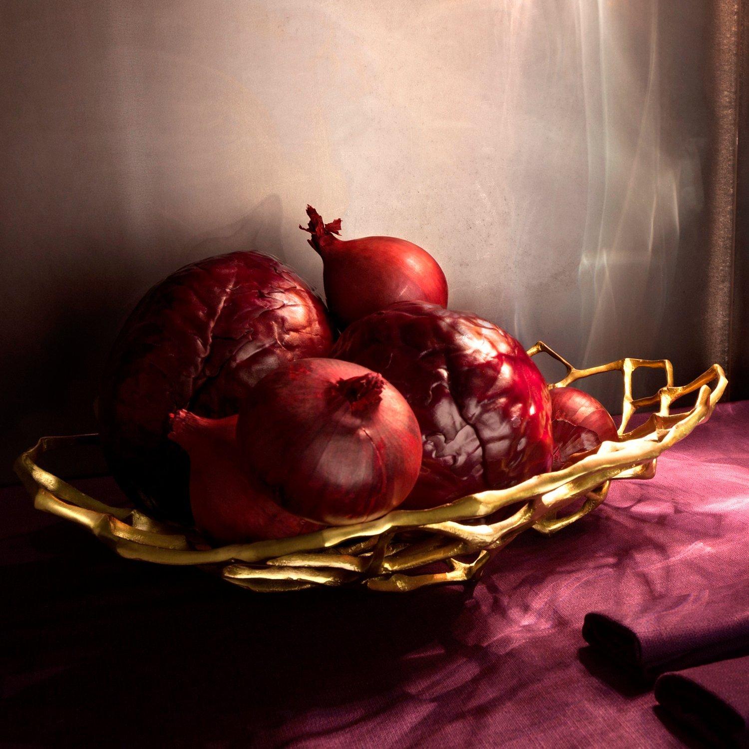 This sculptural bowl is cast in solid brass with a matt finish and is exquisitely crafted into an intricate, curved lattice form. It's open structure is ideal for use as a fruit bowl, whilst the bold, eye-catching design make this a wonderful decorative piece in its own right.