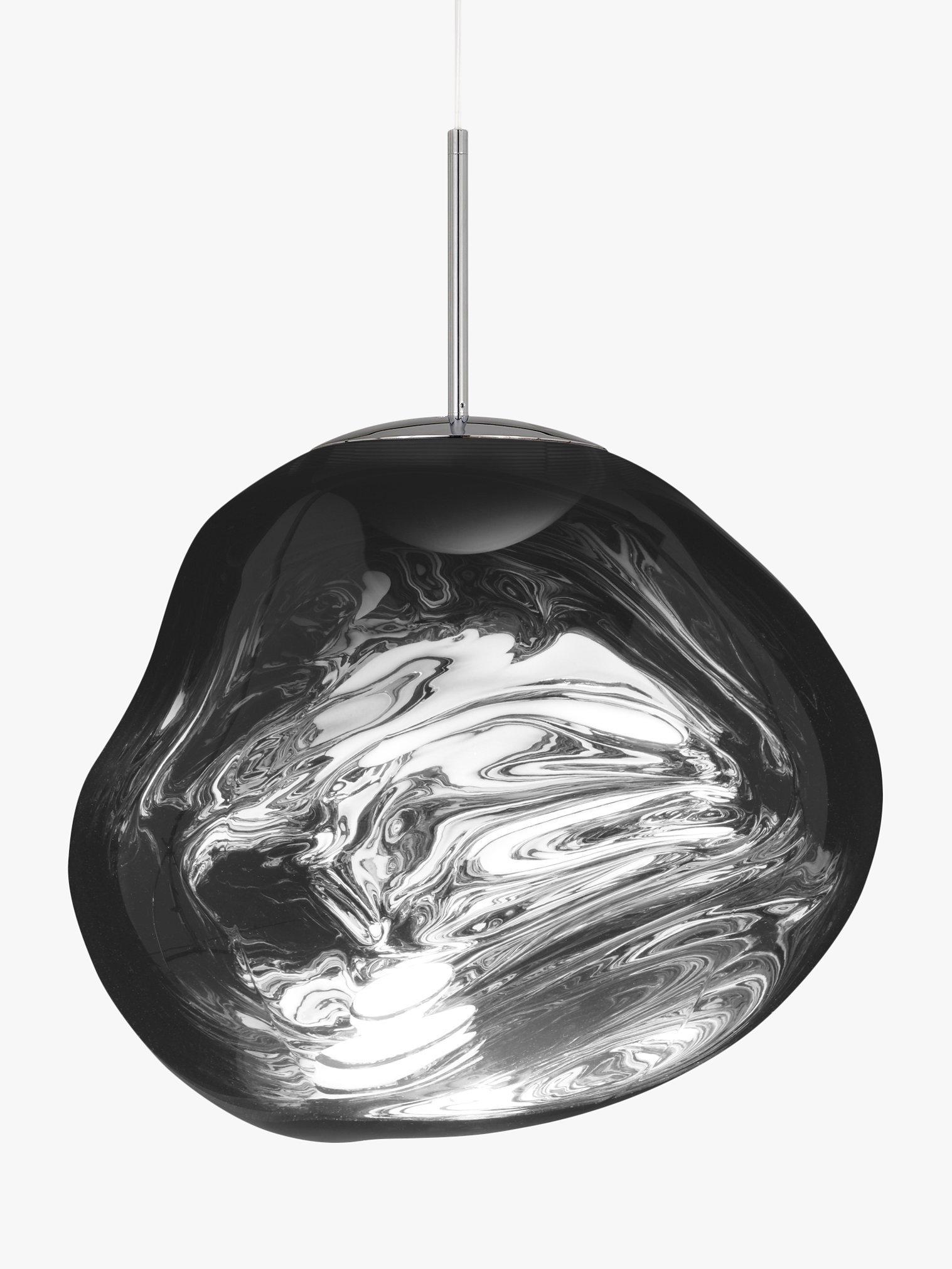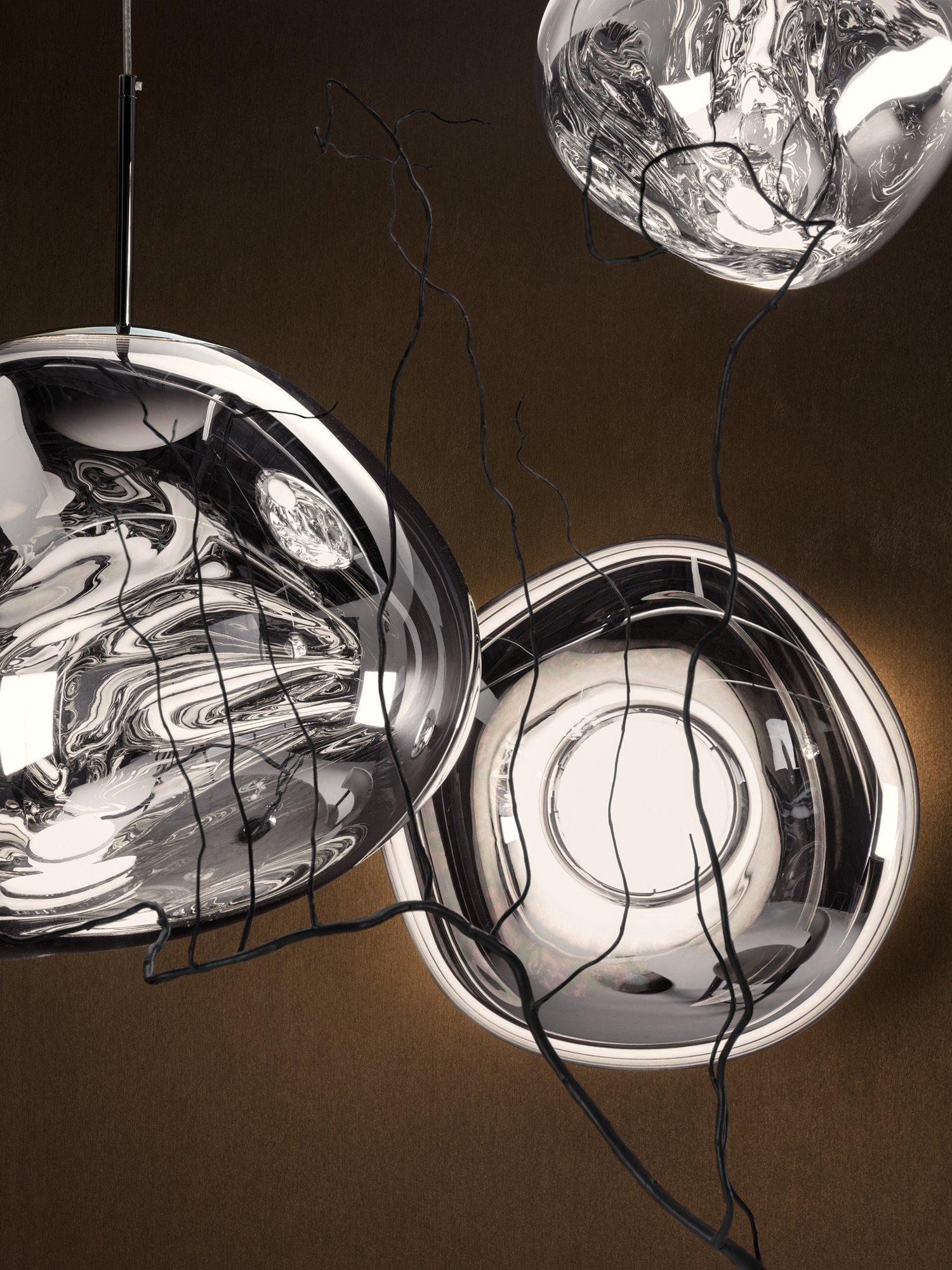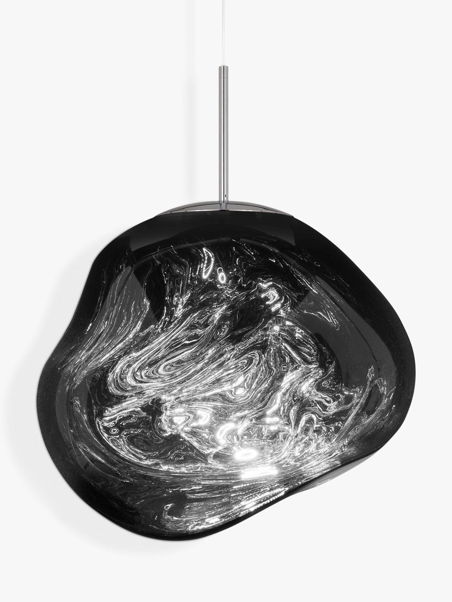 Part of Tom Dixon's celebrated Melt range, the distorted design of this striking pendant creates the effect of melting hot blown glass. This ceiling light is equipped with an integrated LED which emits an ambient and mild glow of light. It's translucent when switched on and has a mirror-finish when switched off.
