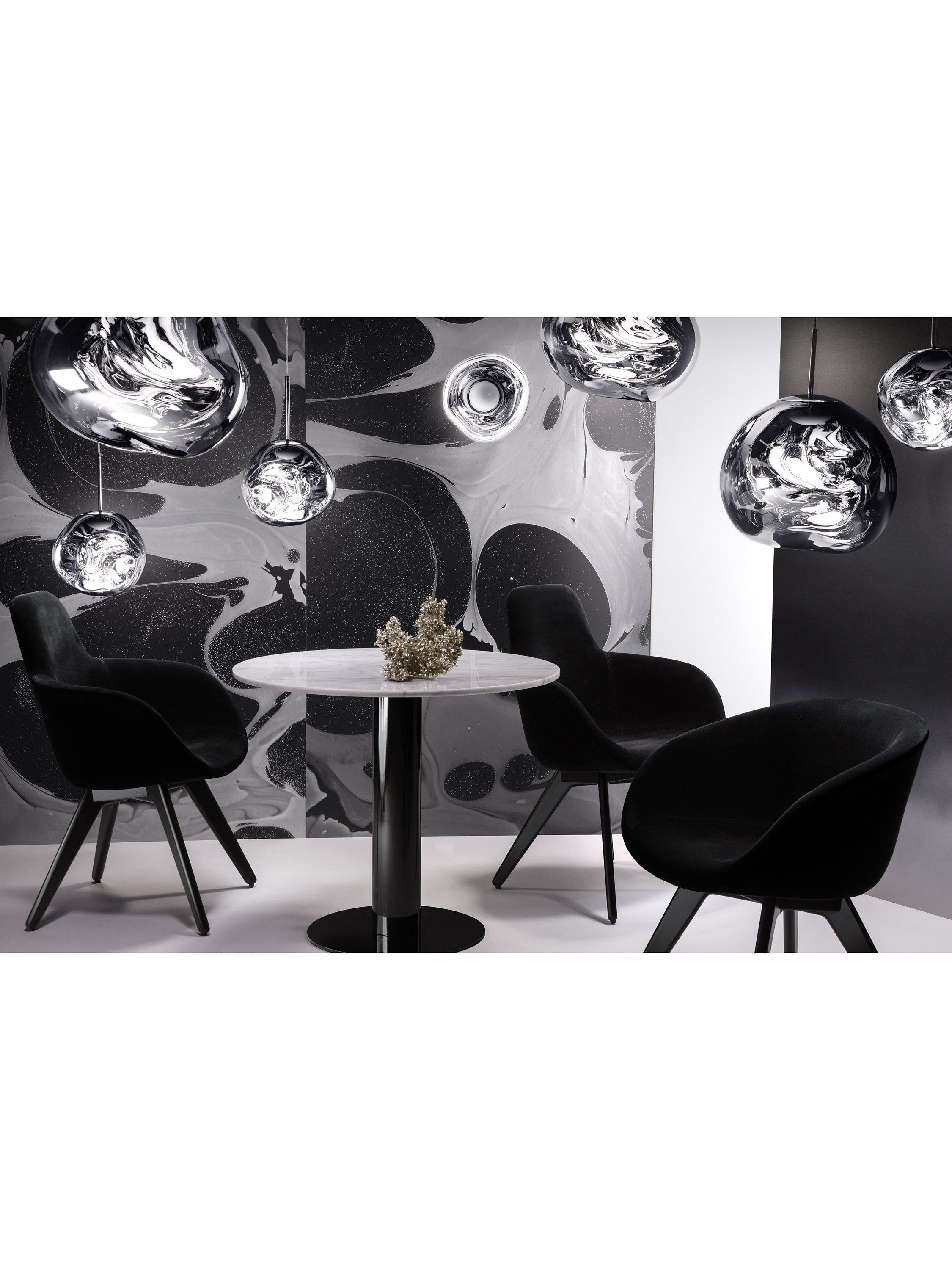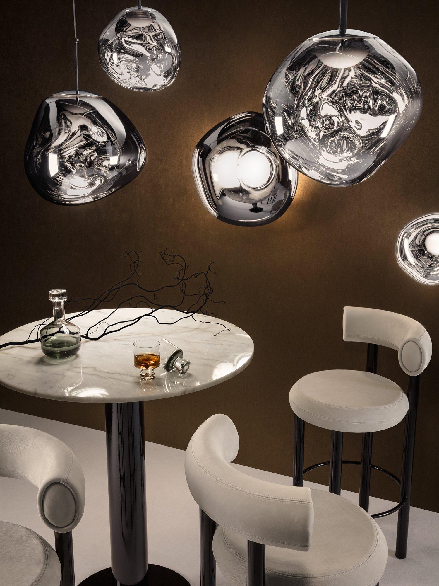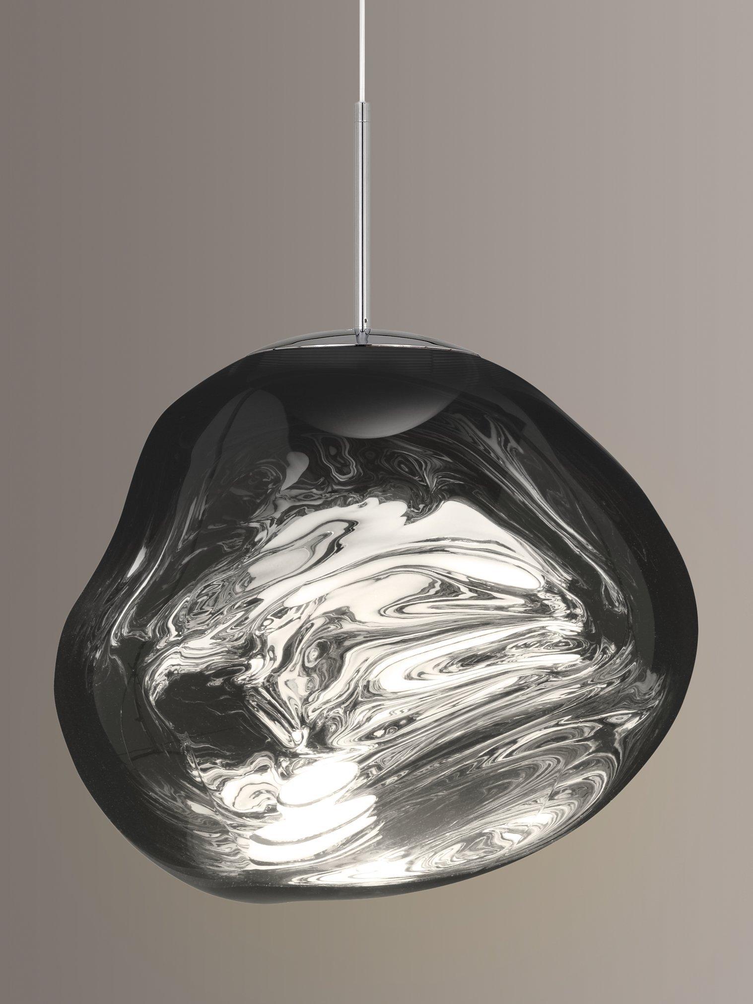 Part of Tom Dixon's celebrated Melt range, the distorted design of this striking pendant creates the effect of melting hot blown glass. This ceiling light is equipped with an integrated LED which emits an ambient and mild glow of light. It's translucent when switched on and has a mirror-finish when switched off.