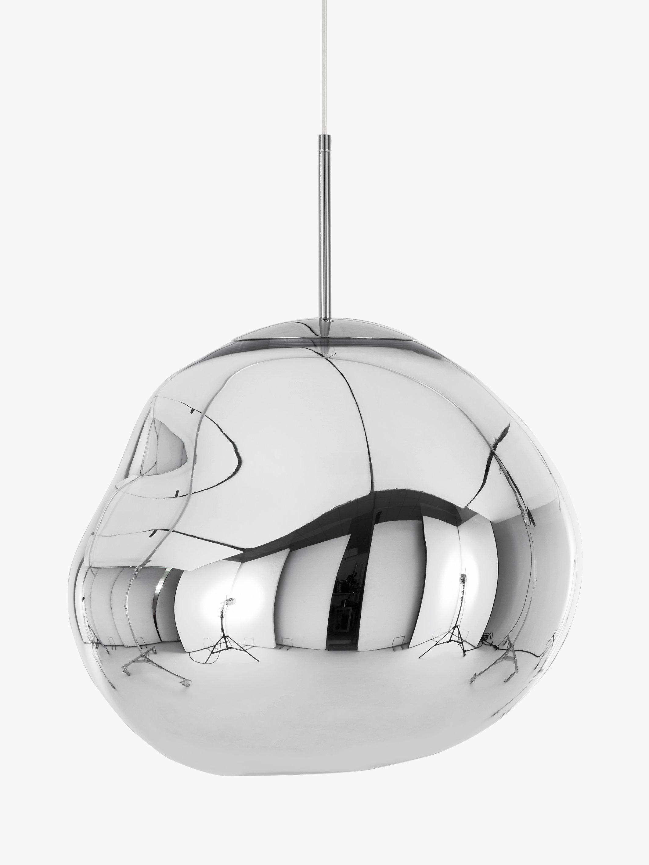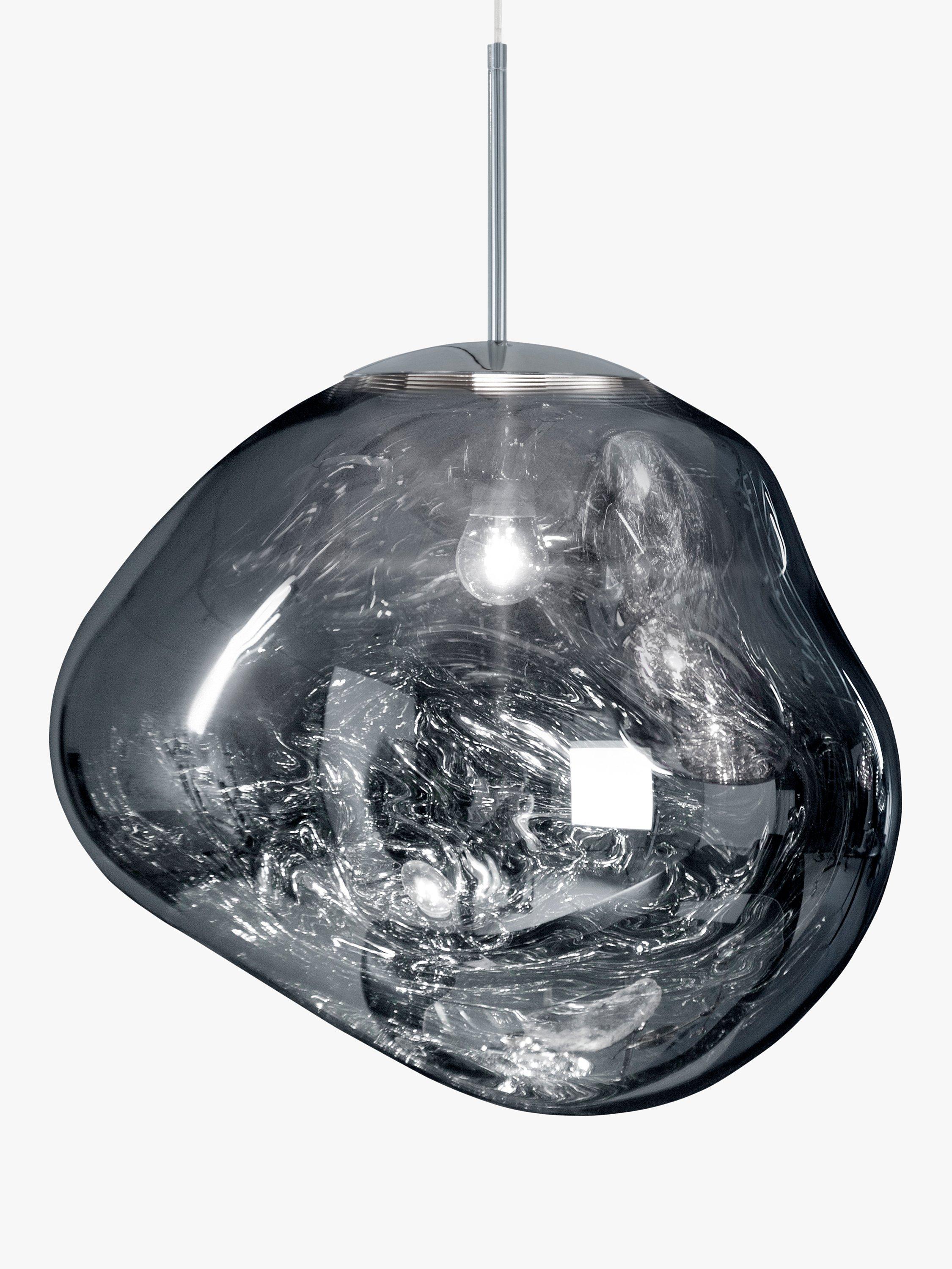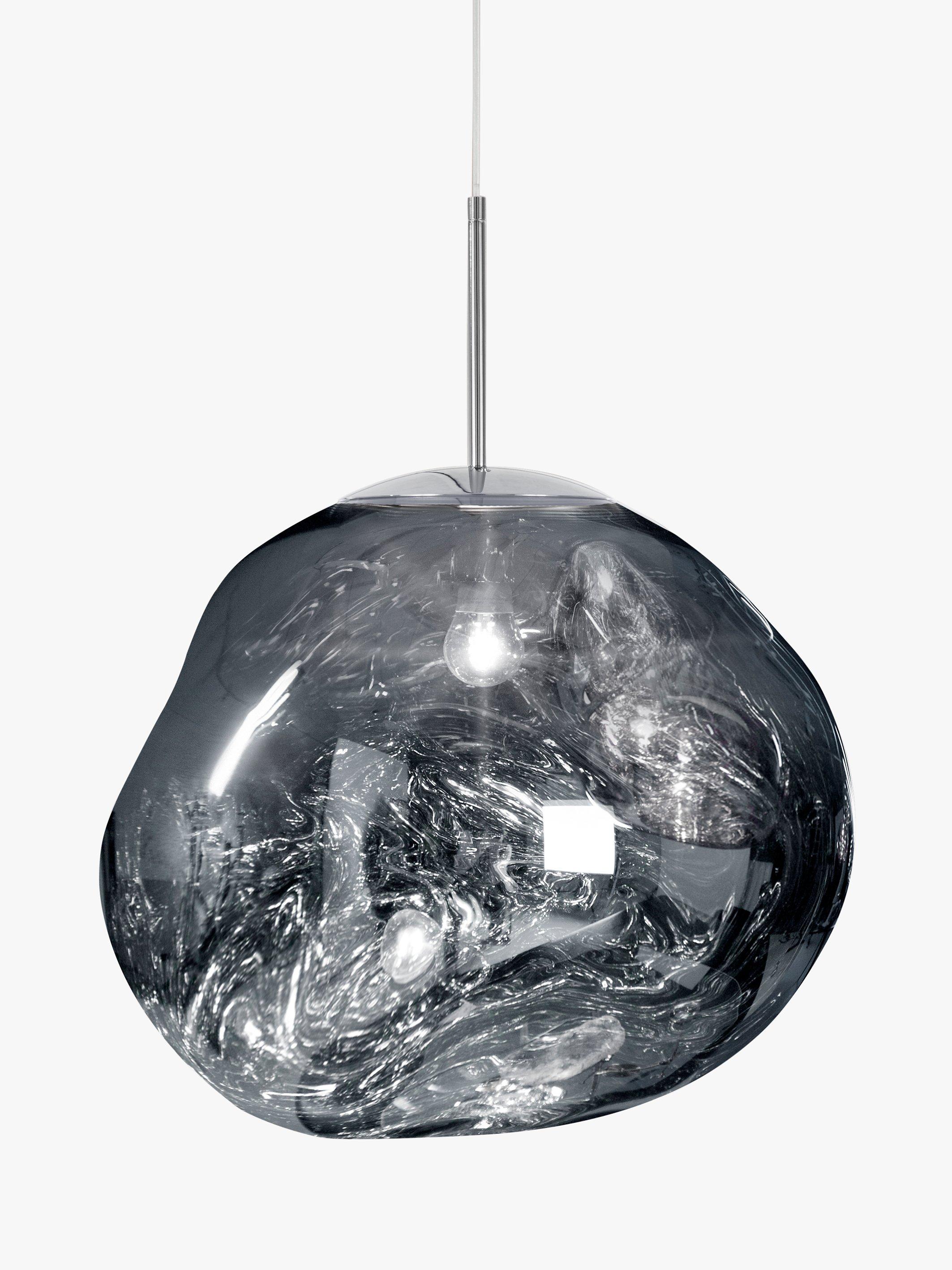 The Melt mini has been created from Tom Dixon's experiments in the technologically advanced field of vacuum metallisation. The light bounces and reflects around its uneven surfaces to create a unique, melting, hot-blown glass effect. Its eye-catching design was created as a result of a collaboration between Tom Dixon and Swedish radical design collective, FRONT.