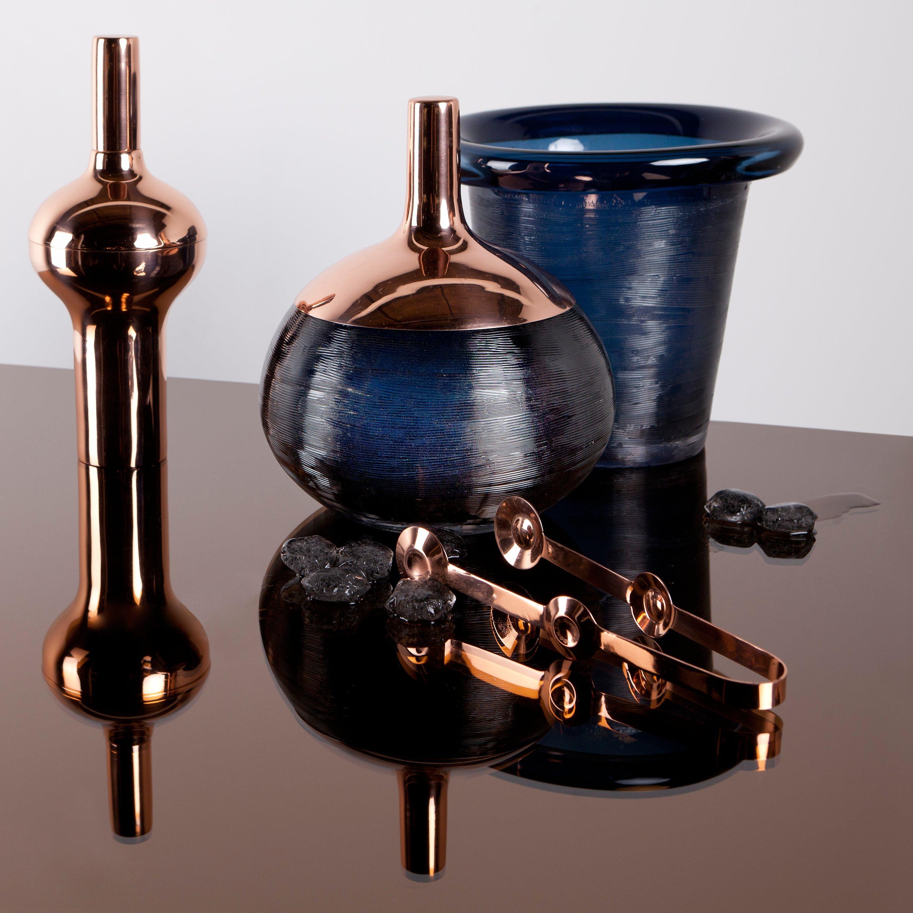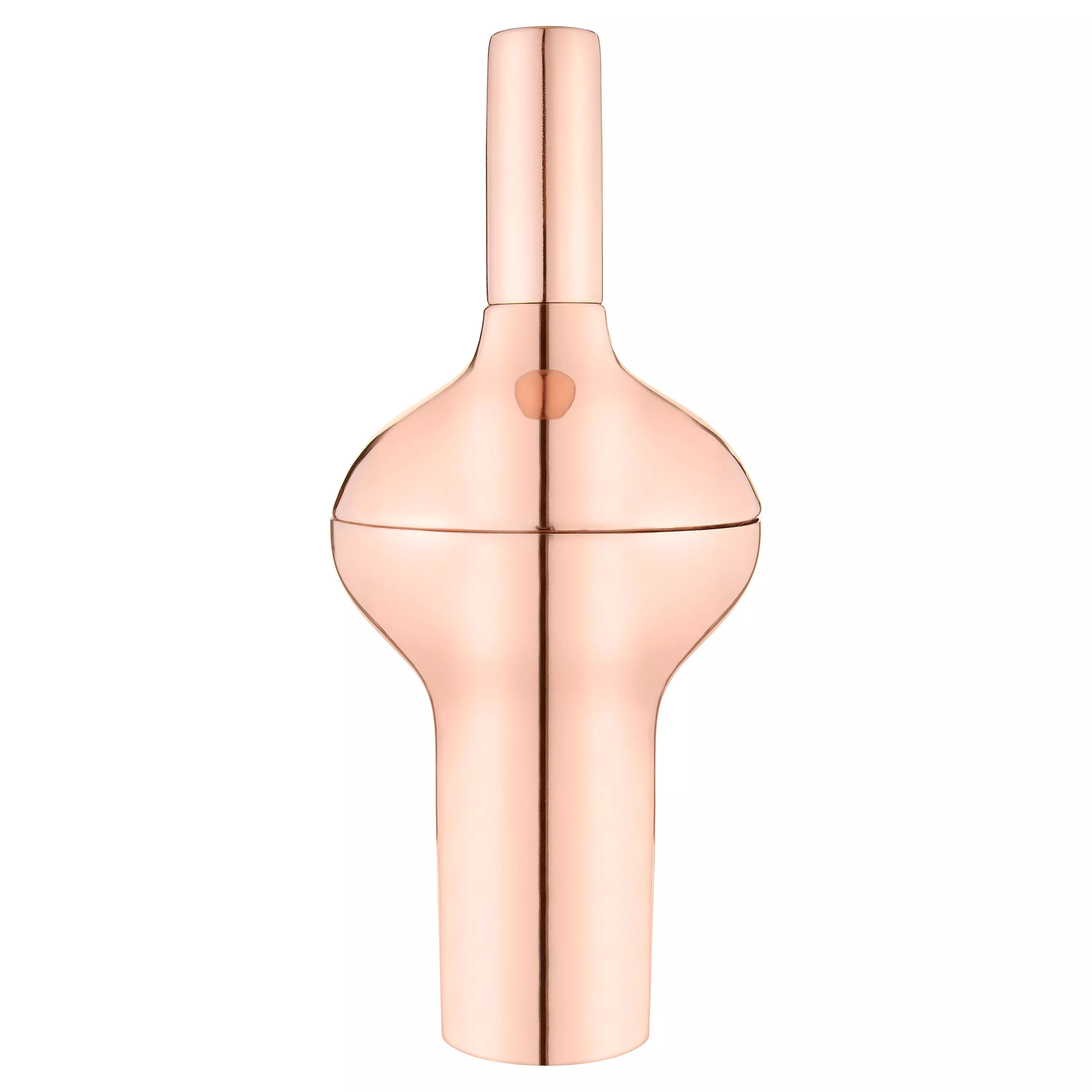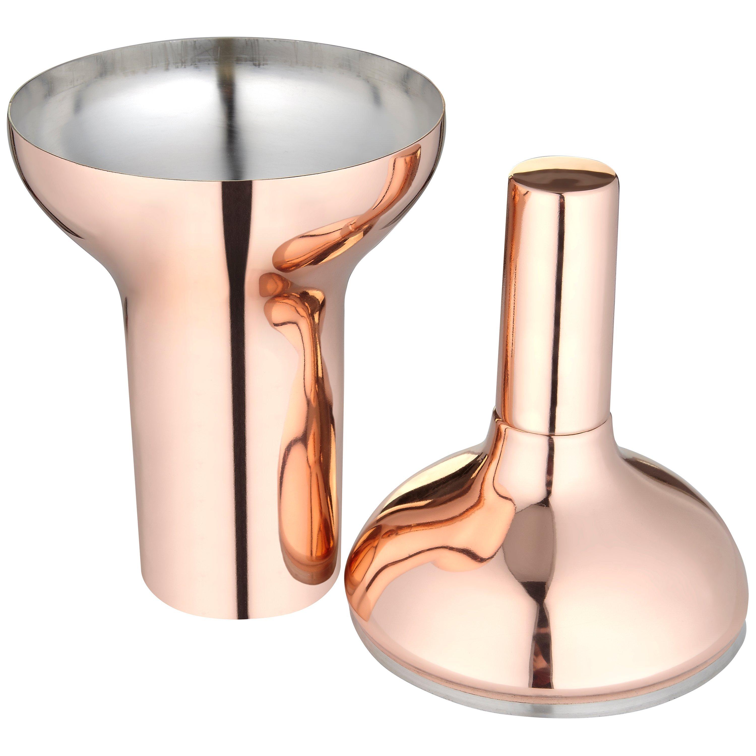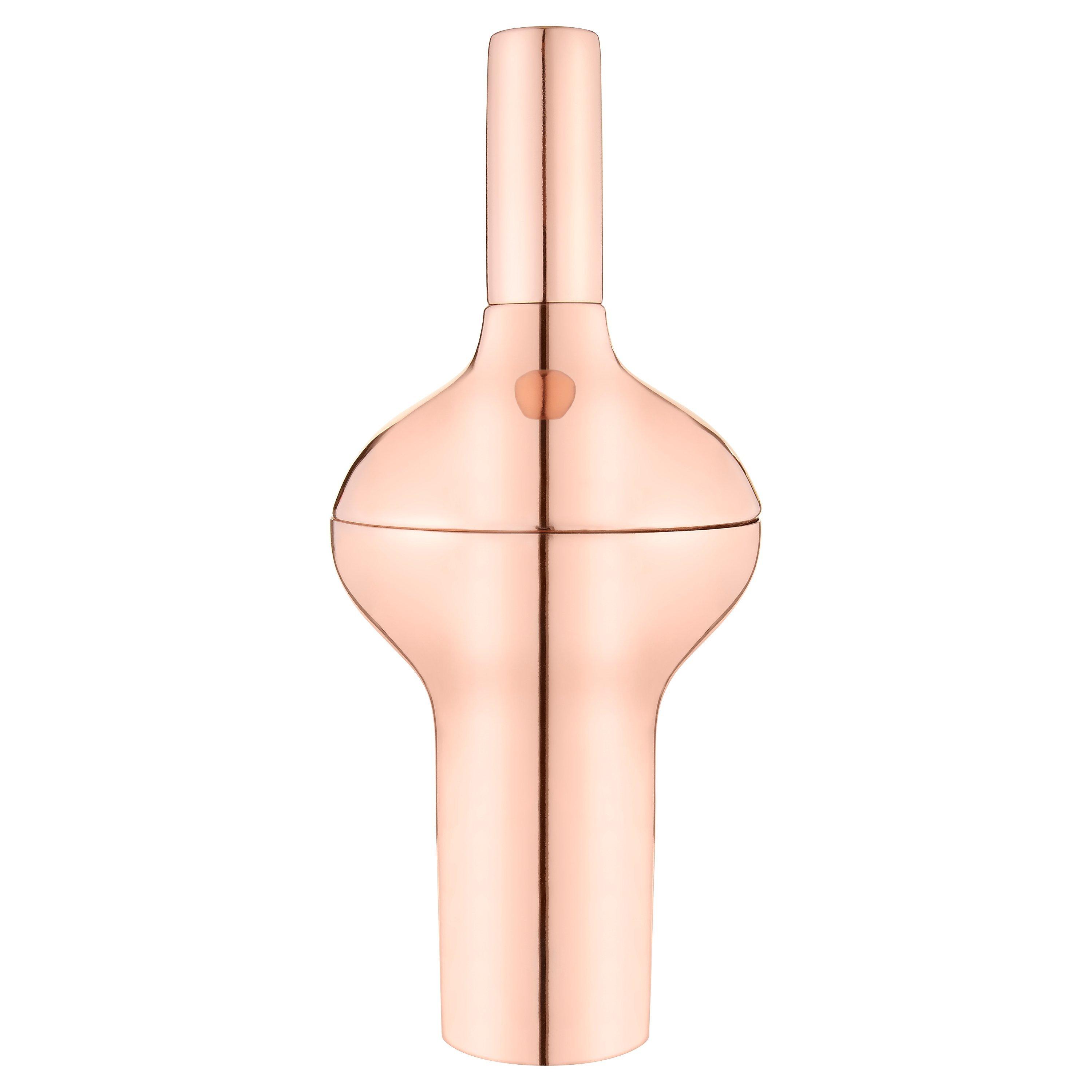 This futuristic copper-plated cocktail shaker combines a thick centre and tapered ends to provide a sturdy hand grip, for pleasurable shaking. The slim lid cap can also be used as a spirit measure. A handsome and useful bar accessory, it makes a great gift for the discerning cocktail-lover.