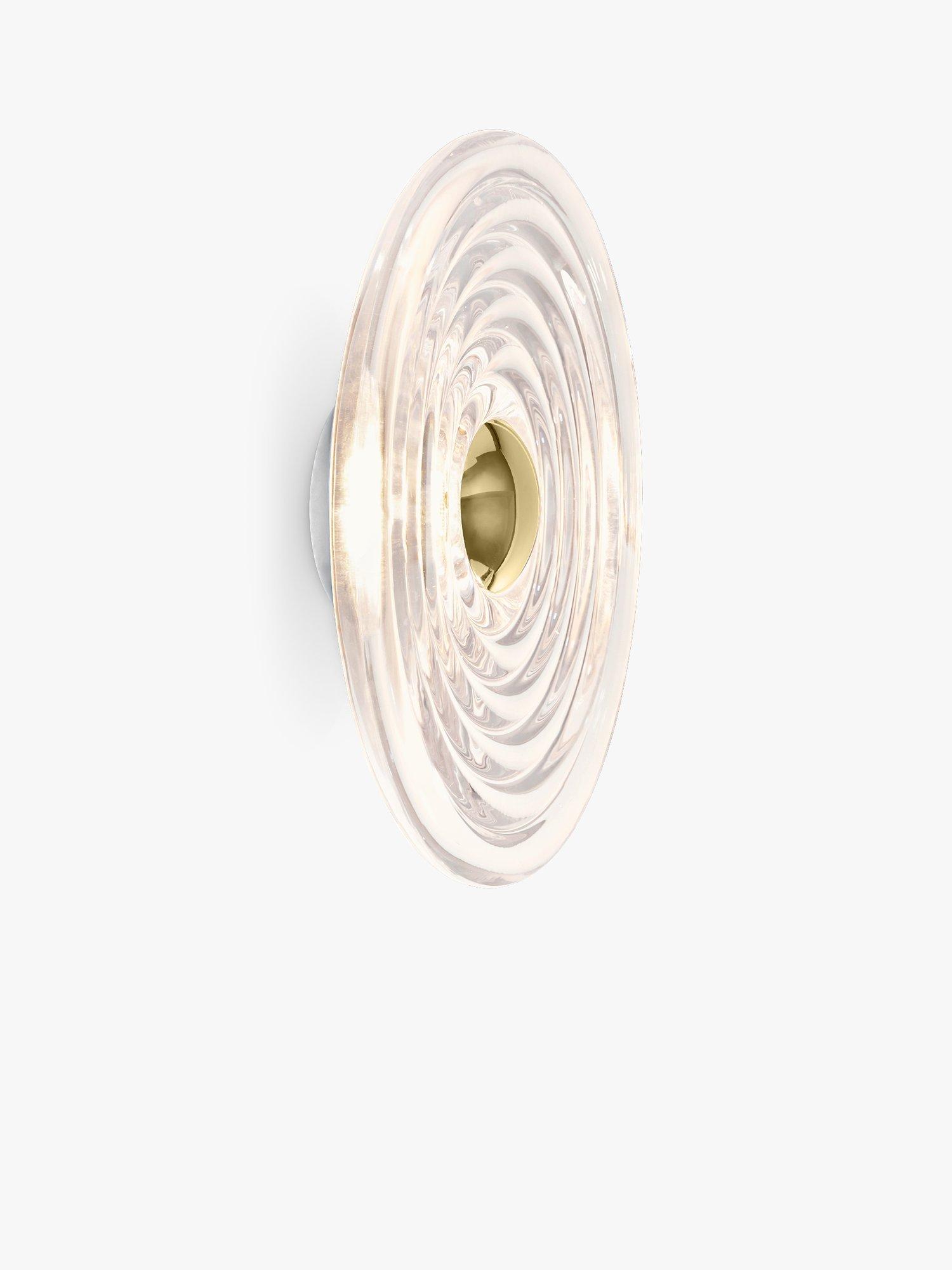 Stunning contemporary wall light made of the thickest industrially pressed glass. Designed and engineered to catch and refract light and to last forever. The ribbed glass creates a diffusion of the light source and projects linear and stripy patterns.
