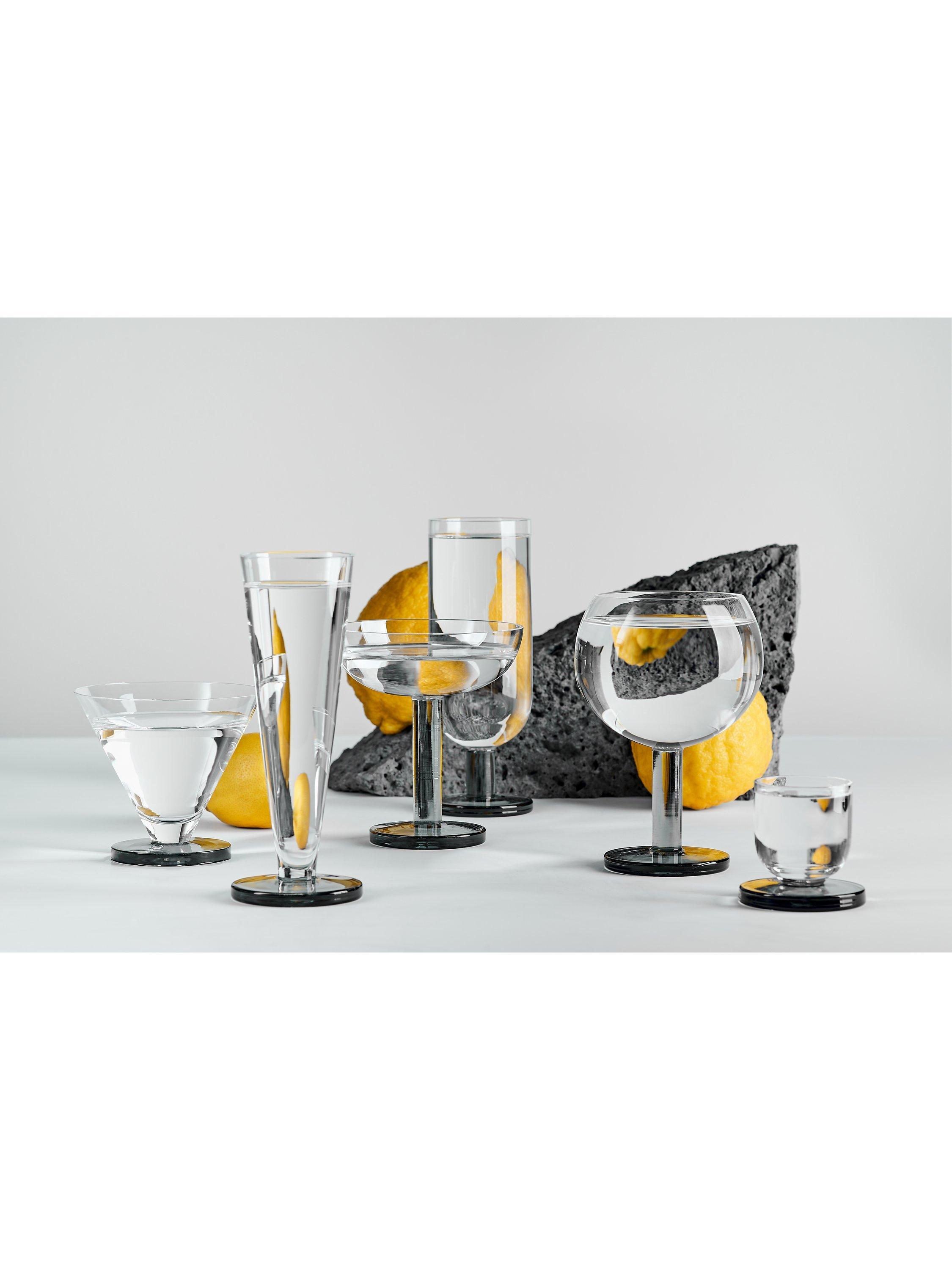The glasses are part of the Puck range, so-called because they're anchored with a thick base reminiscent of game pucks. This heavy base provides stability so they're more likely to stay upright even if used in a busy professional cocktail environment or at a drinks party at home.