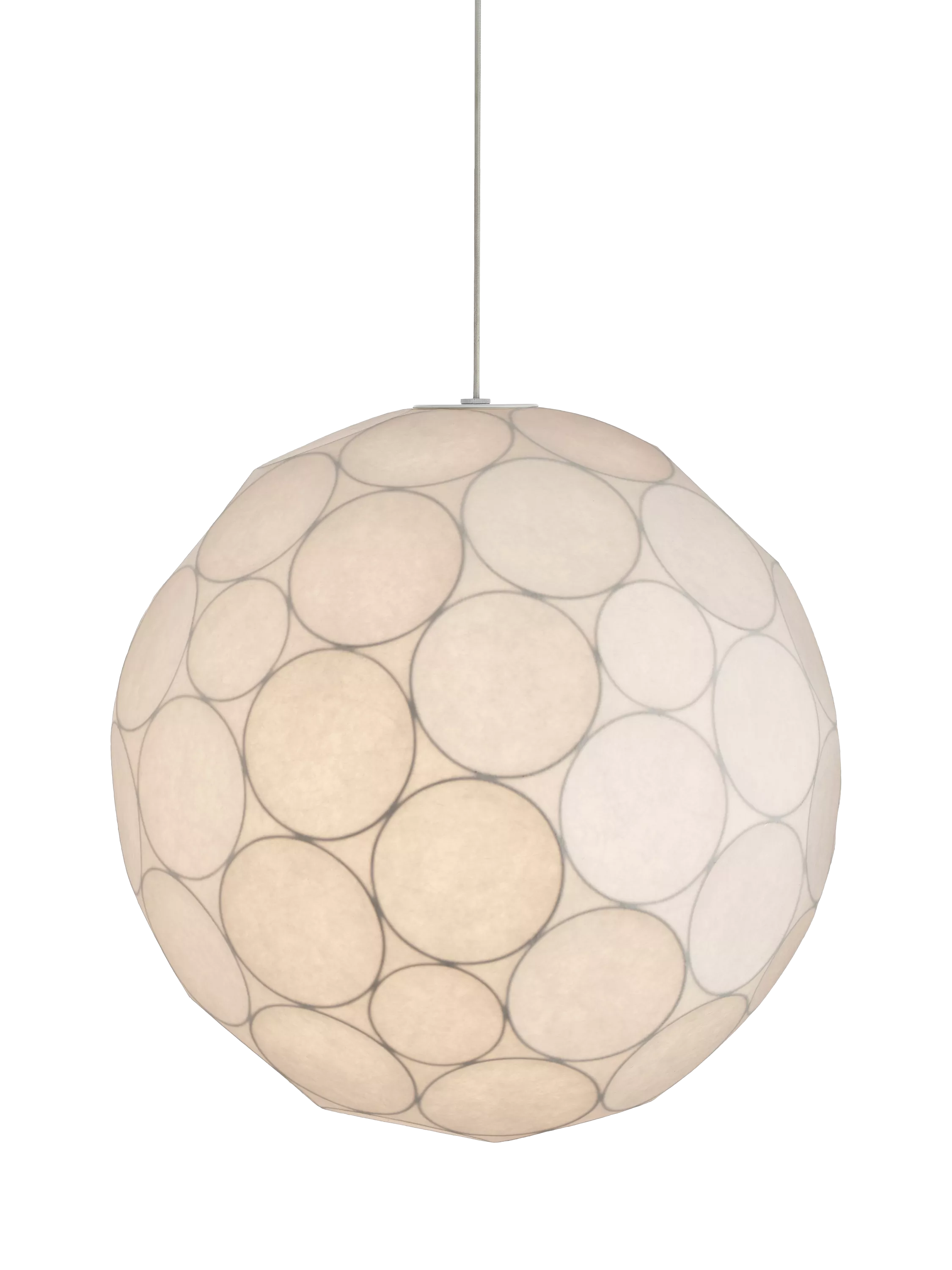 Showing a more neutral and understated side of Tom Dixon, Soft lighting emits a warm, diffused and flattering glow. Inspired by the near-spherical surface of a partially formed celestial body, Soft is constructed from a welded steel frame and sprayed in a cocoon of diffusing material.