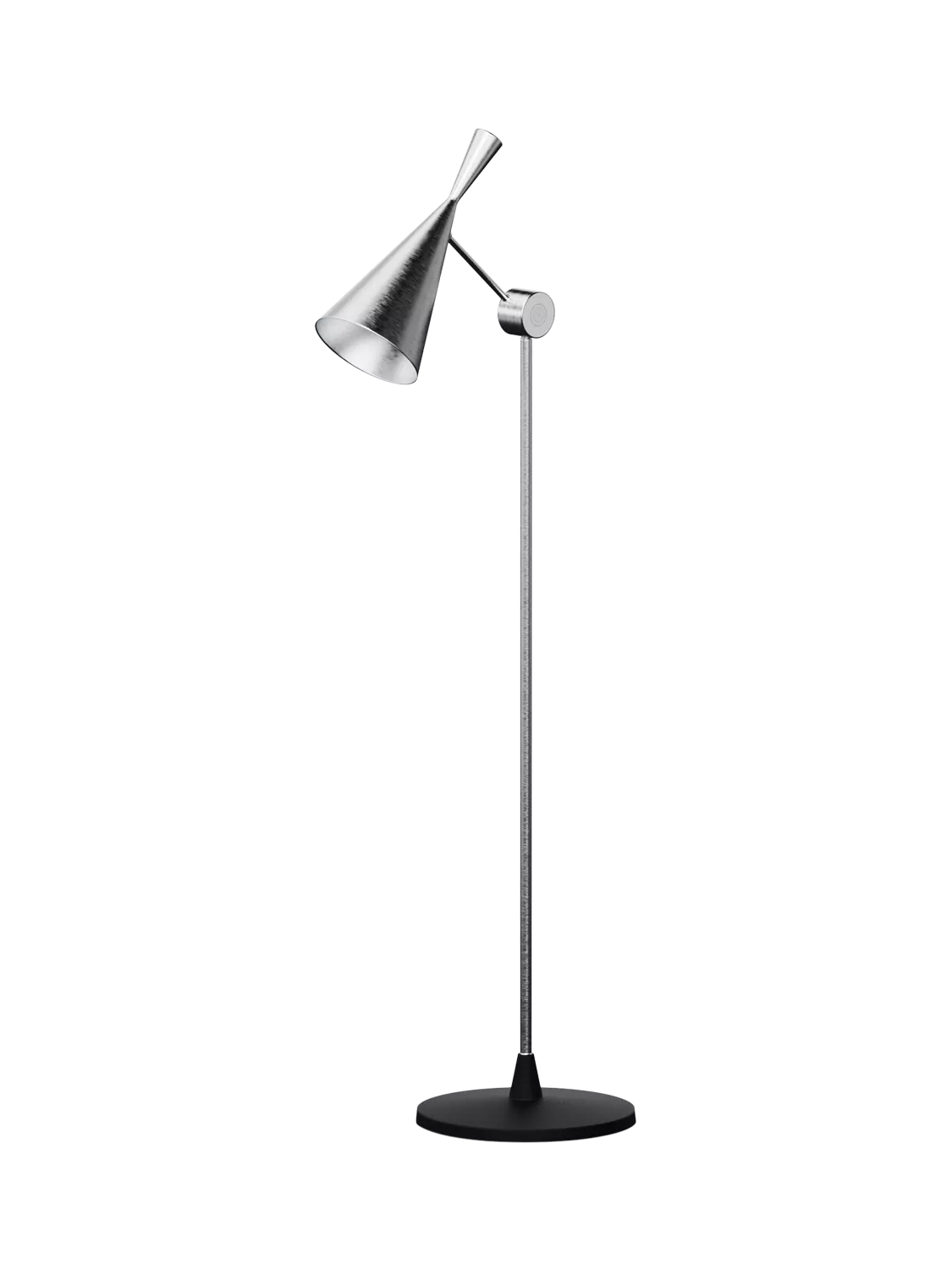 The Unbeaten Floor Lamp showcases the collection's sleek and refined design made of hand-spun and hand-brushed aluminium.