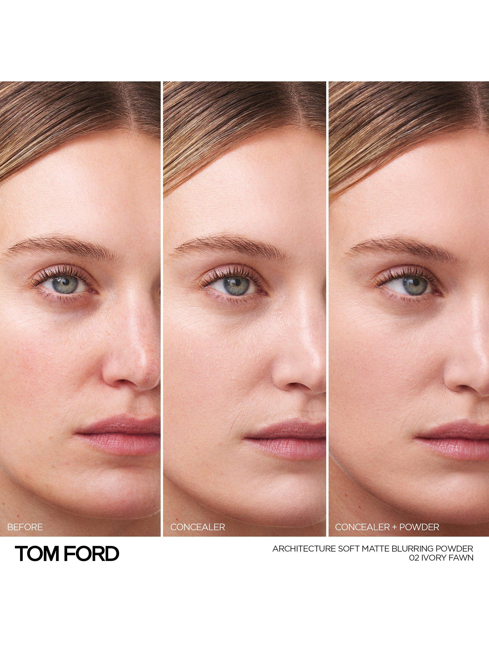 Enhance the Dimension: Complete the TOM FORD look and apply TOM FORD Architecture Soft Matte Blurring Powder wherever shine control is desired.