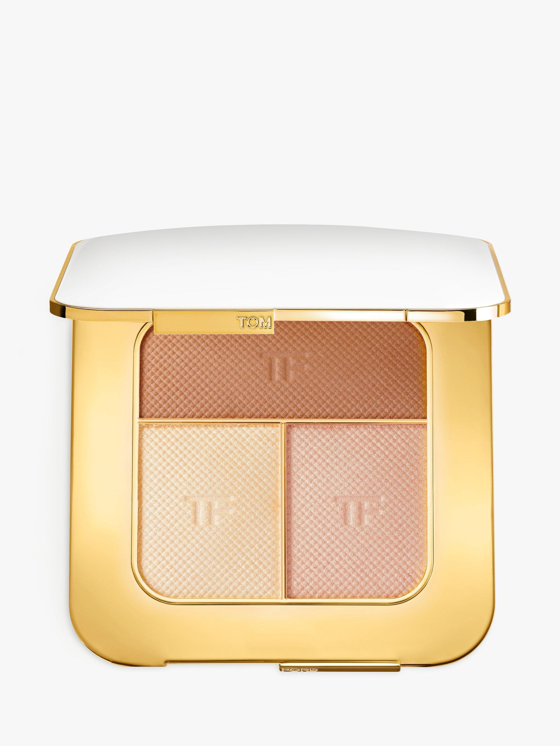 Mauve nude blush gives cheeks the perfect touch of colour, the peach nude highlighter mimics the sun reflecting off the skin and the sultry dark nude enhances a healthy radiance. Use shades alone or together to contour a seductive, natural glow. Provides sheer to medium coverage, both matte and radiant. Embossed with TOM FORD logo.