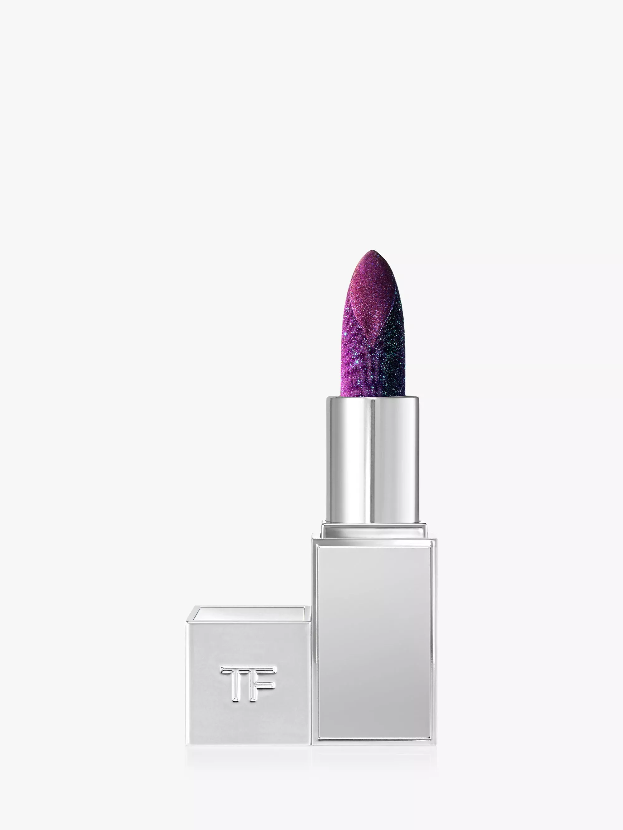 Lips go high voltage with new paillette-packed Lip Spark. The ultra-gliding metallic sequin lipstick imparts explosive colour with the look of loose glitter on lips. In glittering nudes like Surge and Thrust, and the ruby slipper sequin of Stunner, opulent glamour reigns supreme. Playful purple like Trance and the sleek silver of Bolt debut a new shade range of lipstick both unexpected and perfectly TOM FORD.
