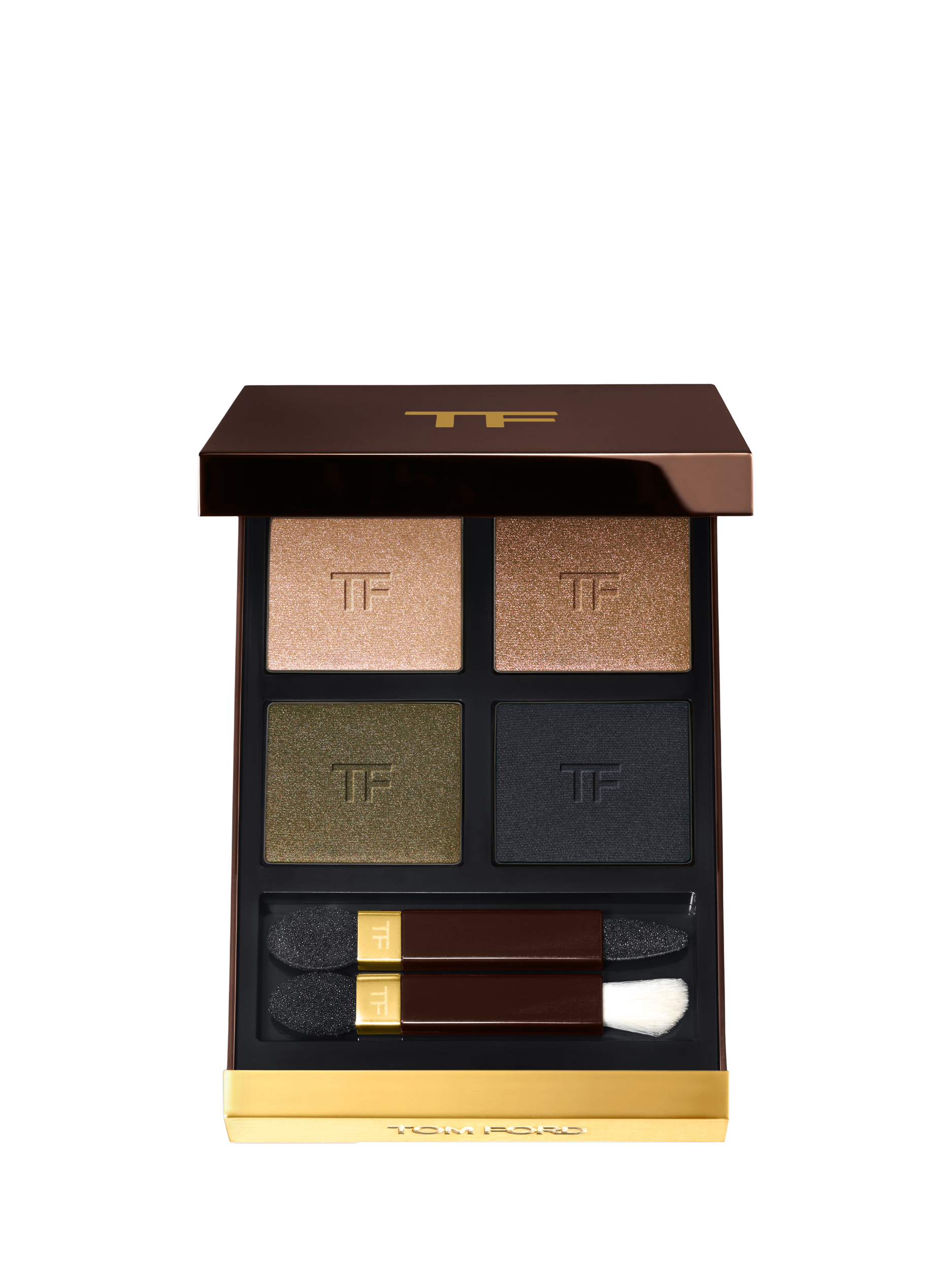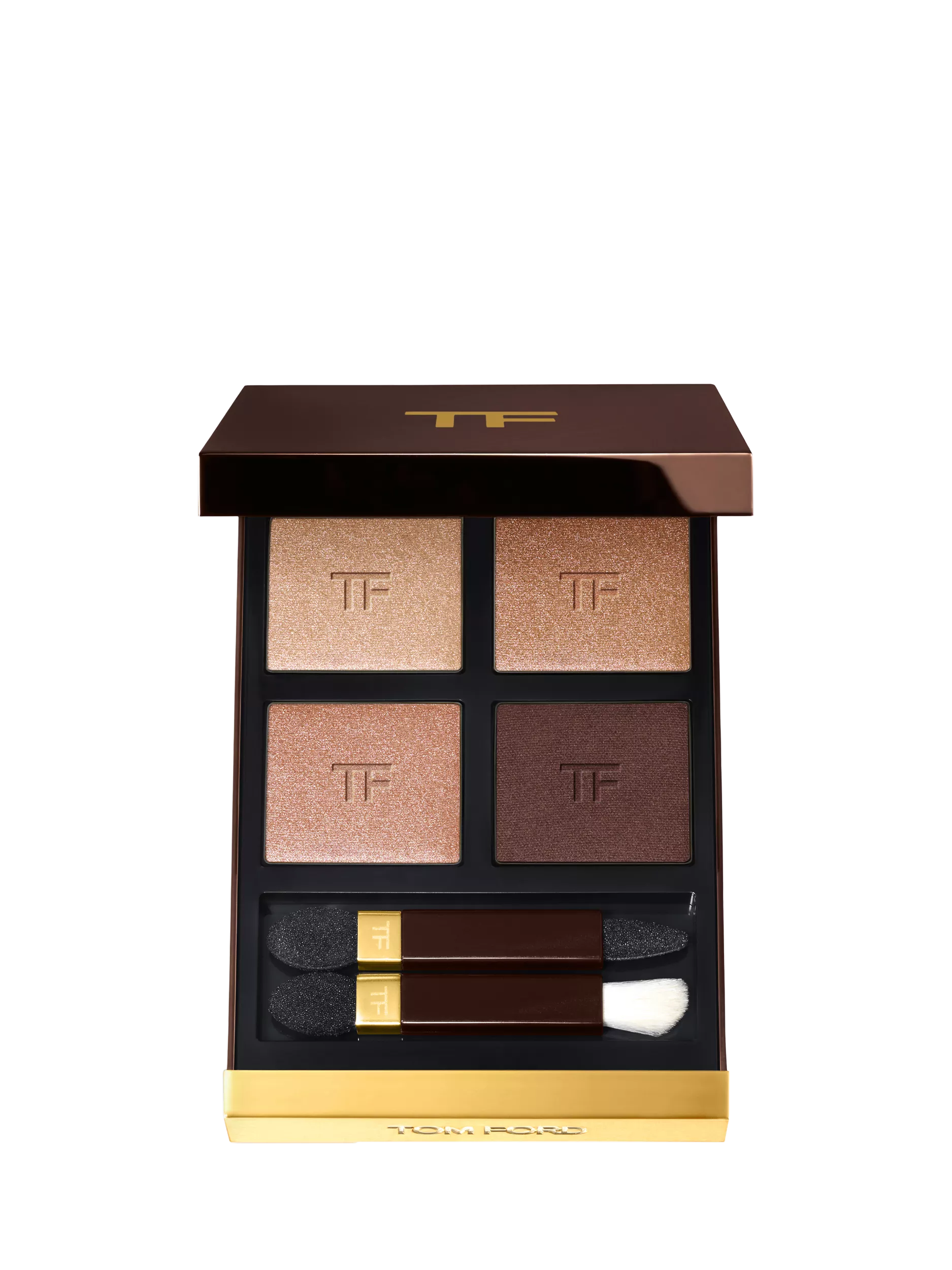 Apply with applicator or with TOM FORD eye brushes. Apply shade 1 all over lid. Blend shades 2 and 3 on the upper and lower lid. Blend shade 4 into the outer crease and on the outer lower lid.