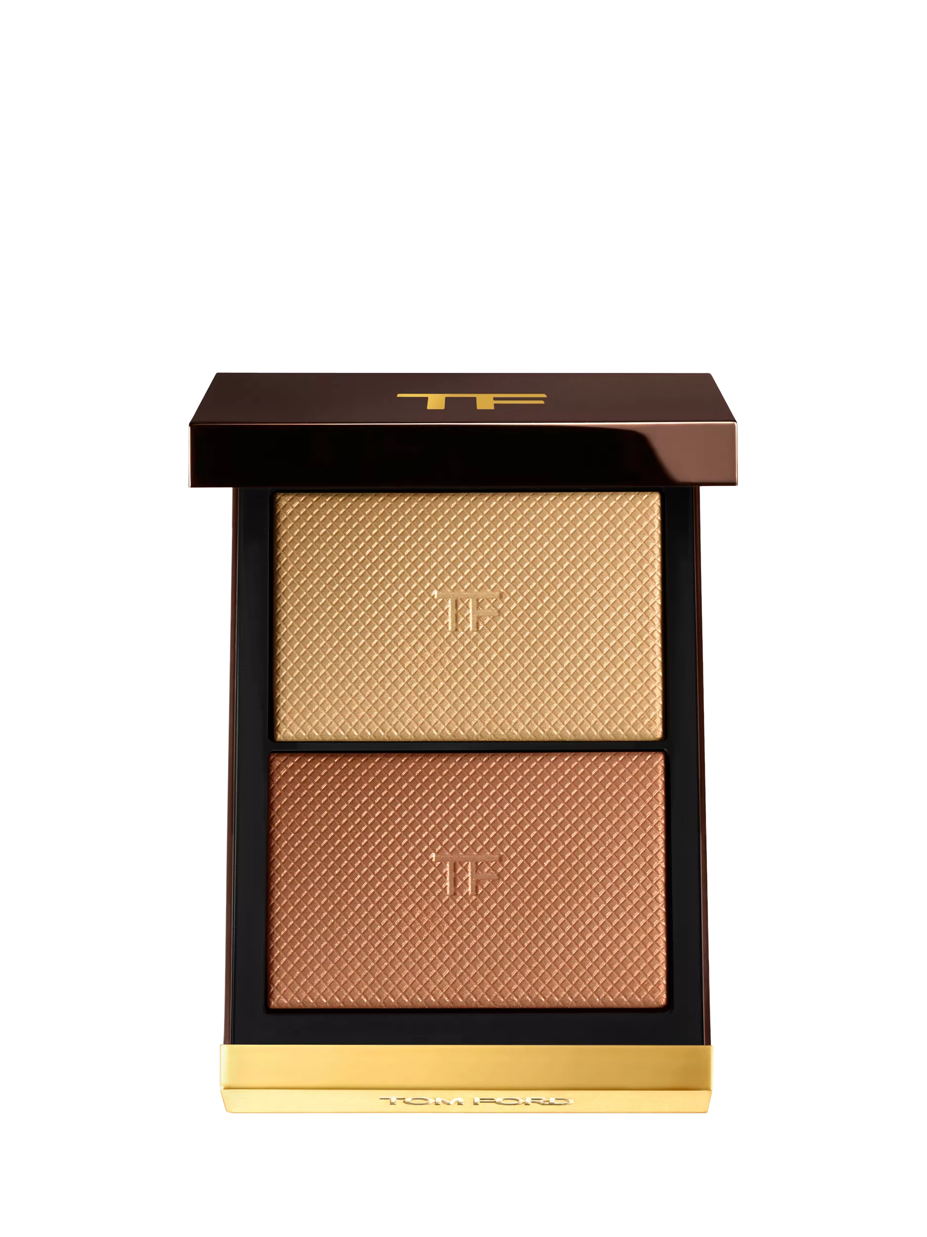 Use the lighter shade to highlight and the darker shade to bronze – or combine both for a sheer glow.
