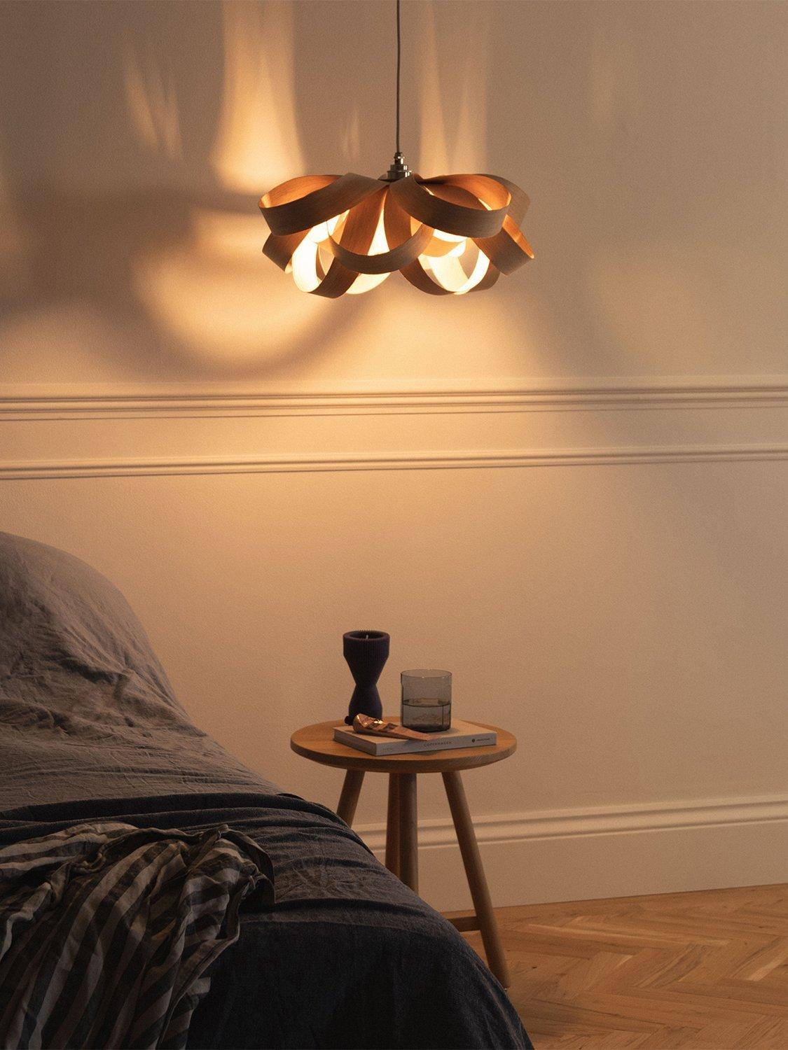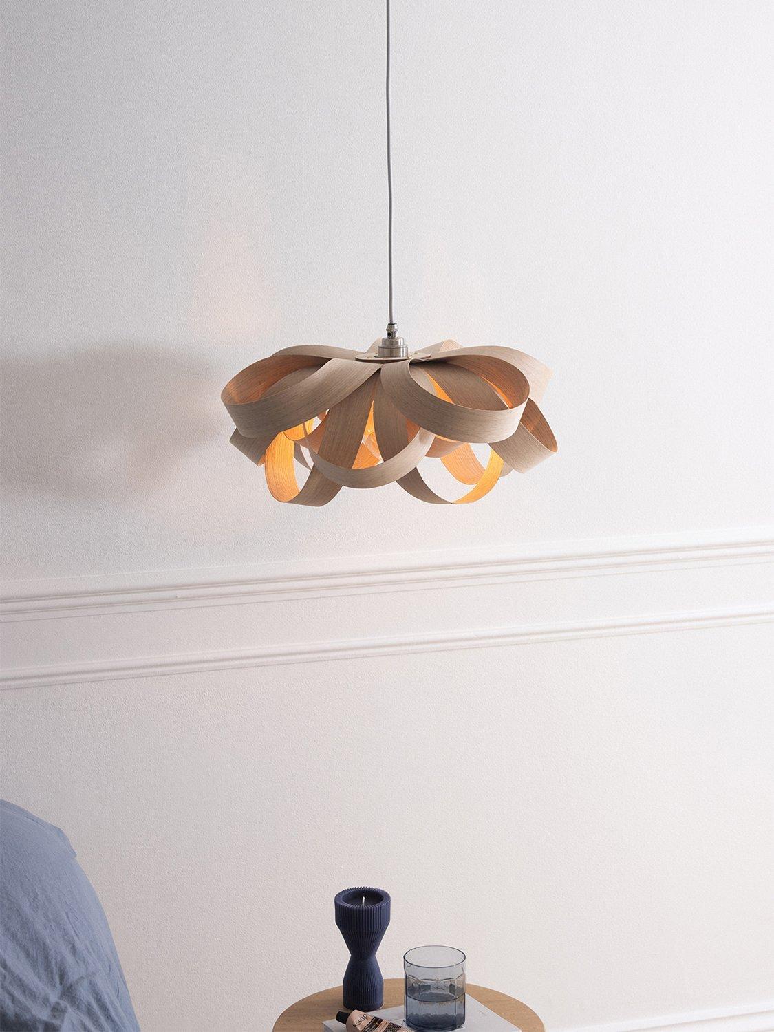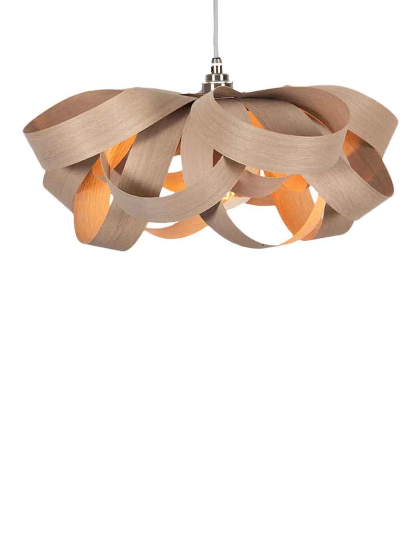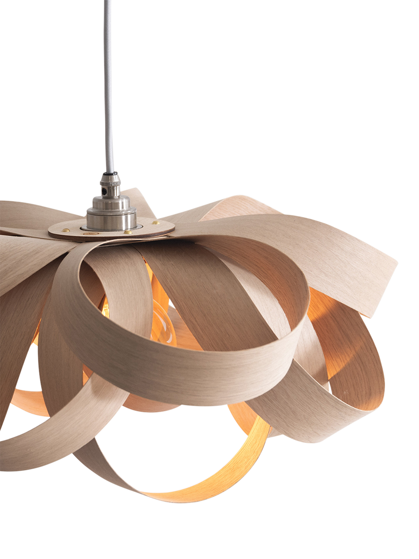 A joyful interpretation of nature's beauty, Tom Raffield's Small Bloom pendant light is made of hand-curved oak wood. The organic shape emits a wonderful array of light and shadow.